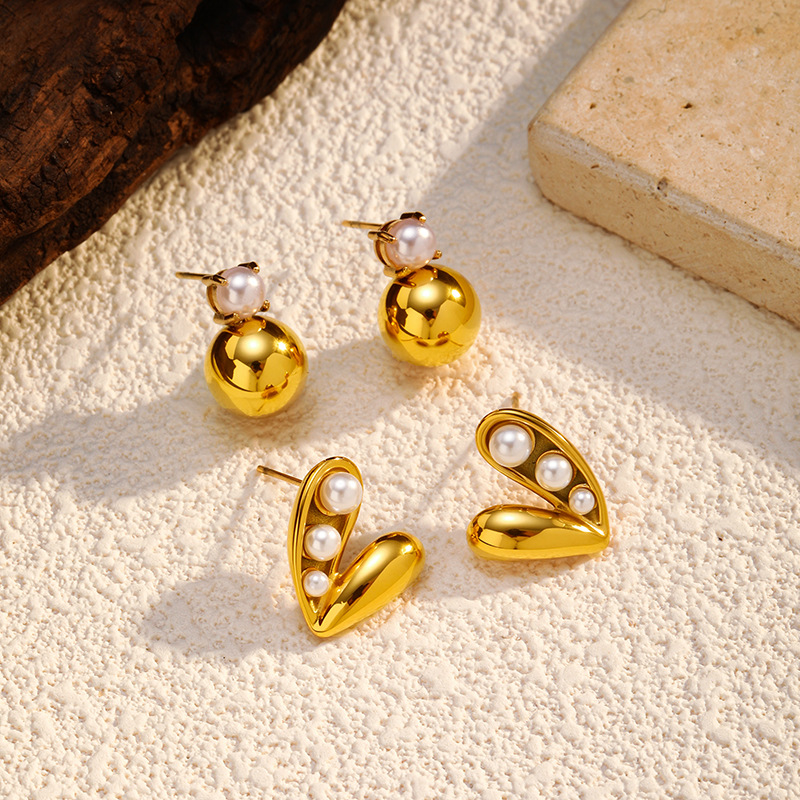 Arete de acero inoxidable , acero inoxidable 304, con Perlas plásticas, 18K chapado en oro, Joyería & diferentes estilos para la opción & para mujer, Vendido por Par