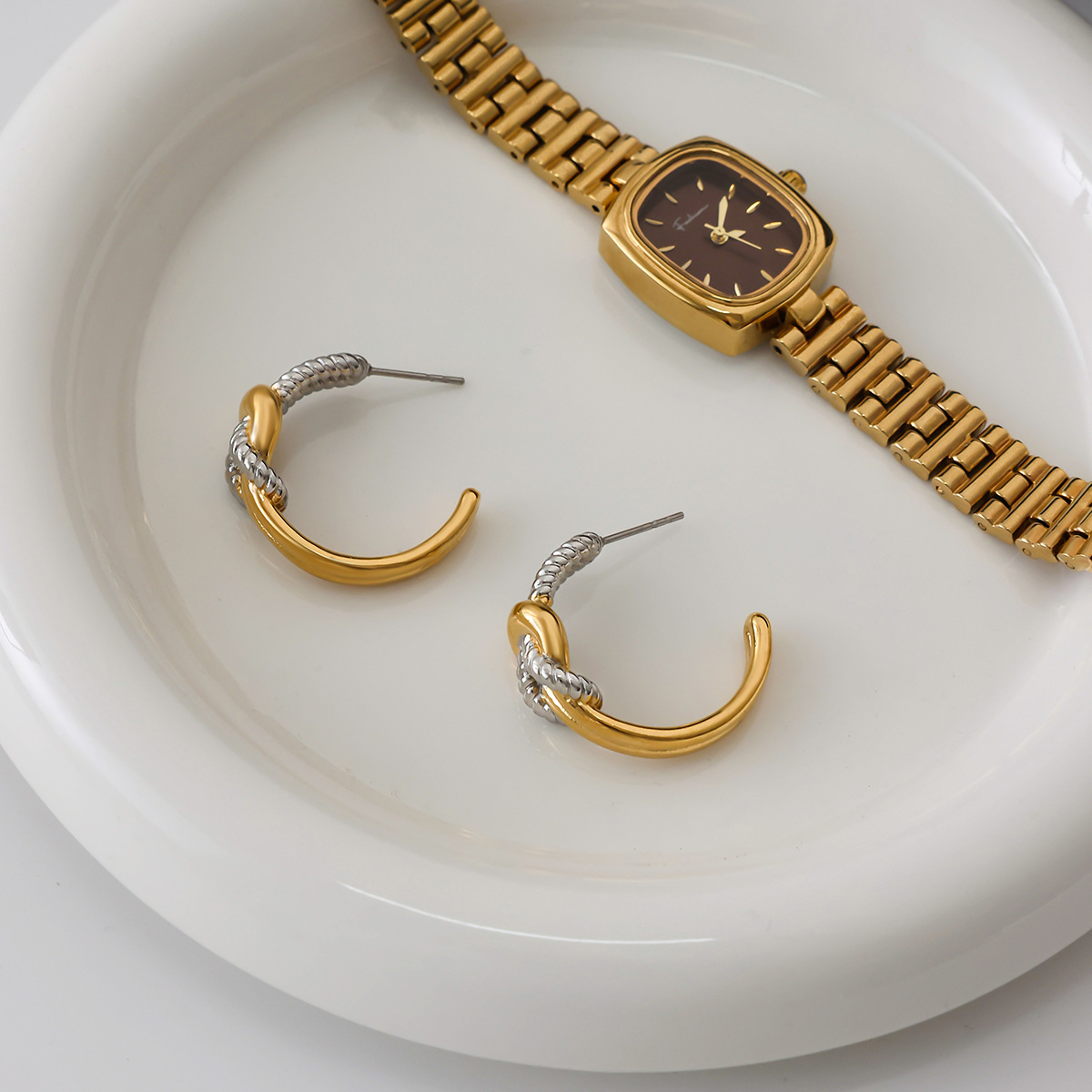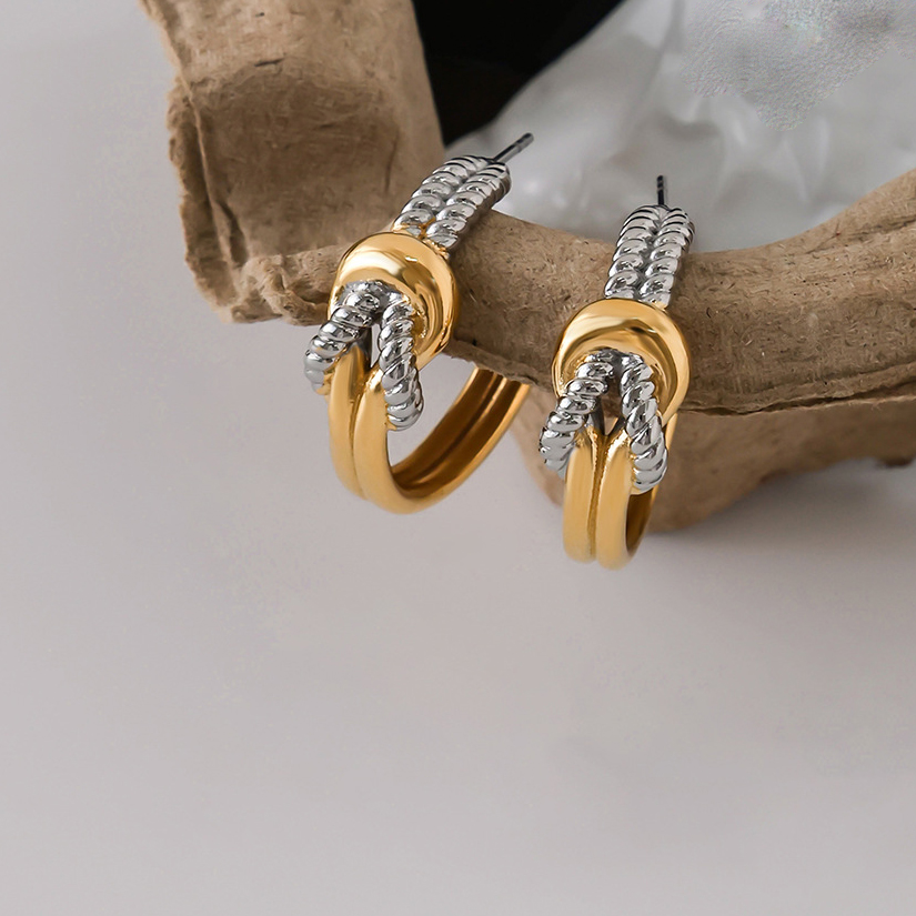 Arete de acero inoxidable , acero inoxidable 304, chapado, para mujer & 2-tono & hueco, Vendido por Par