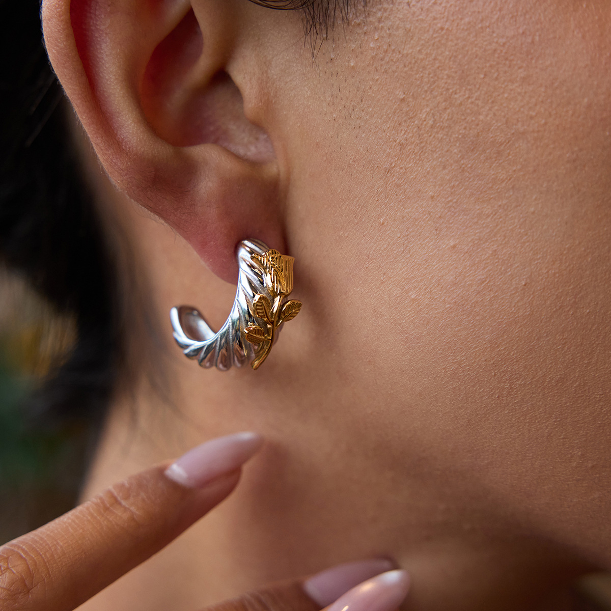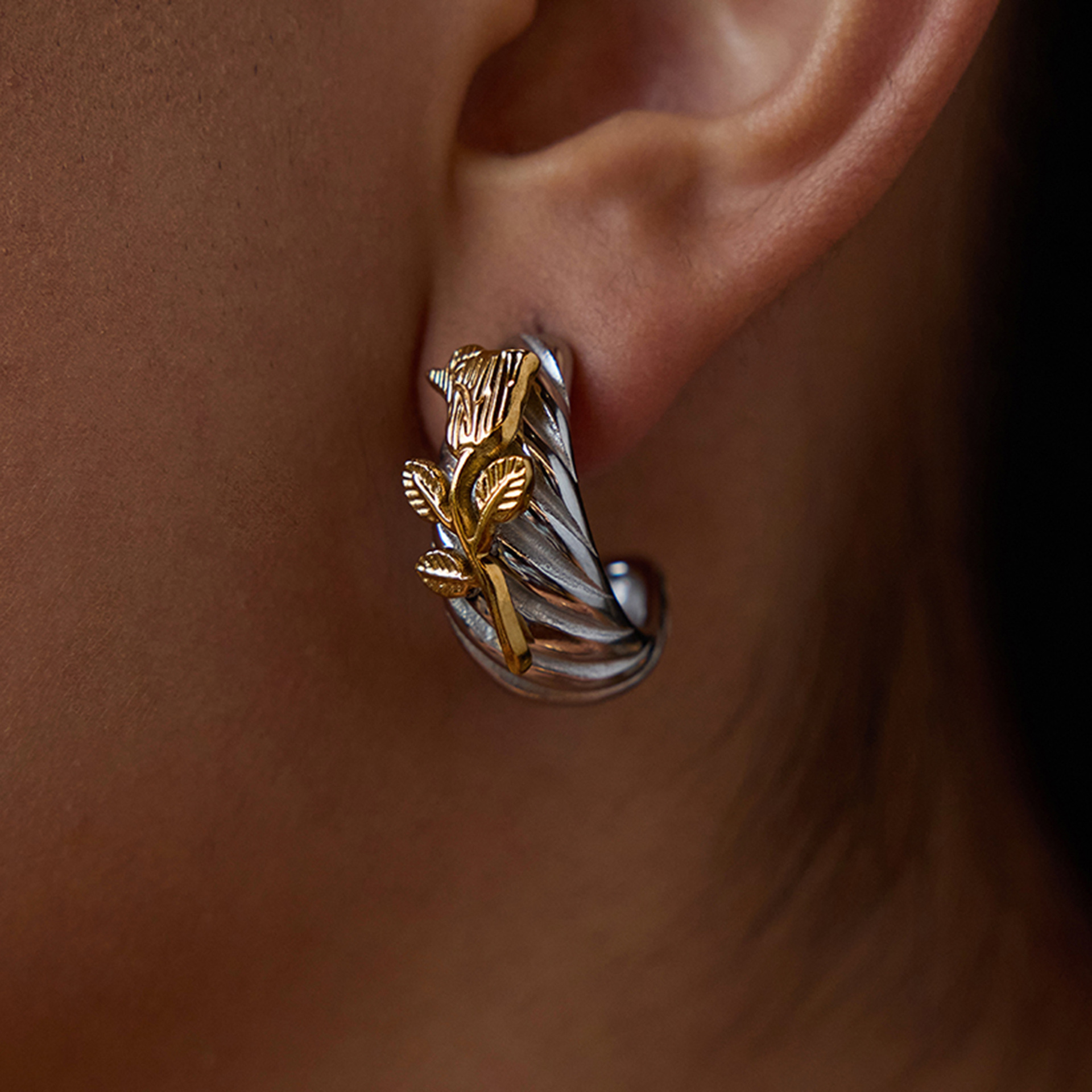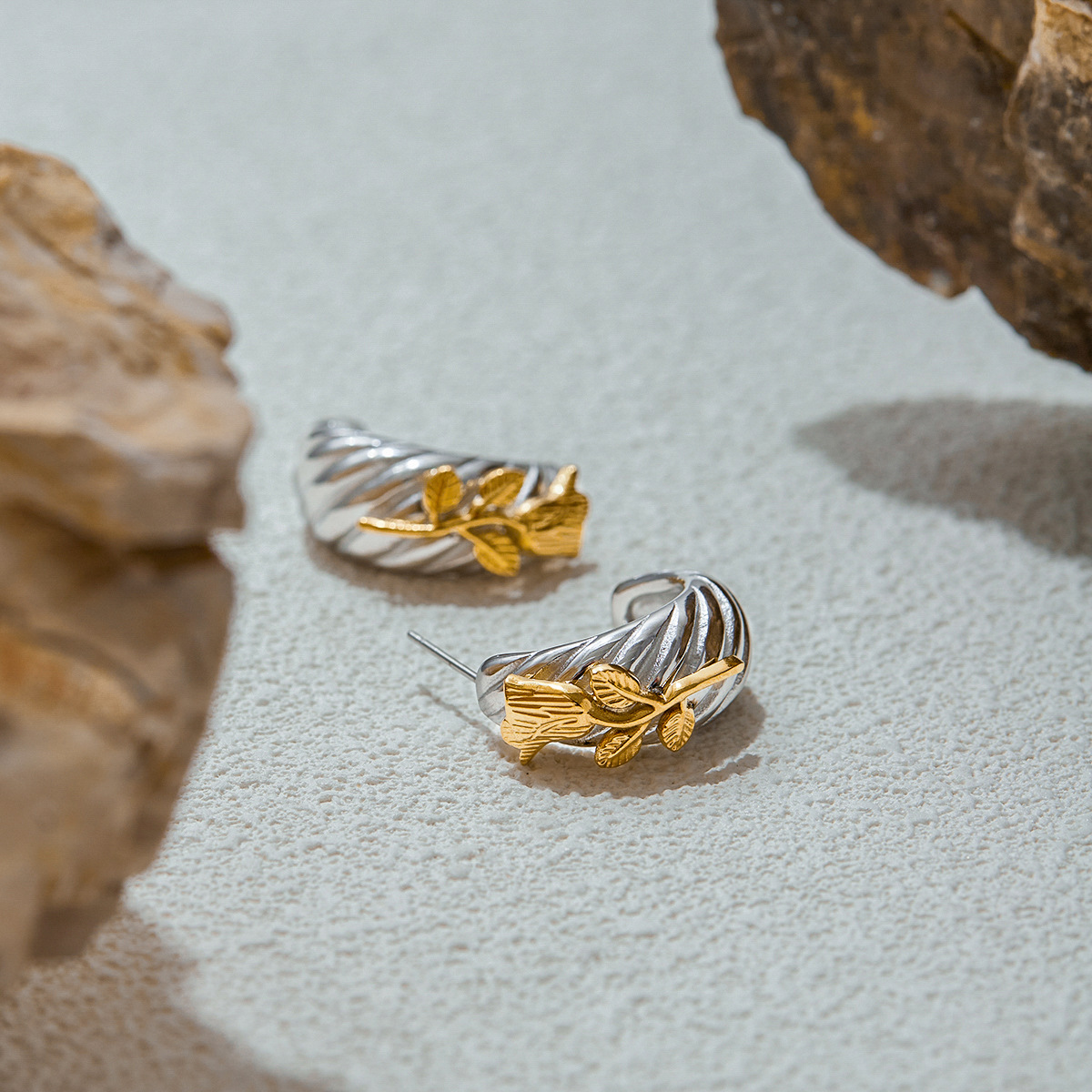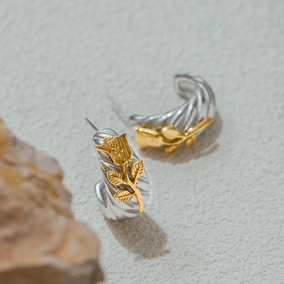 Arete de acero inoxidable , acero inoxidable 304, chapado, Joyería & para mujer & 2-tono, Vendido por Par