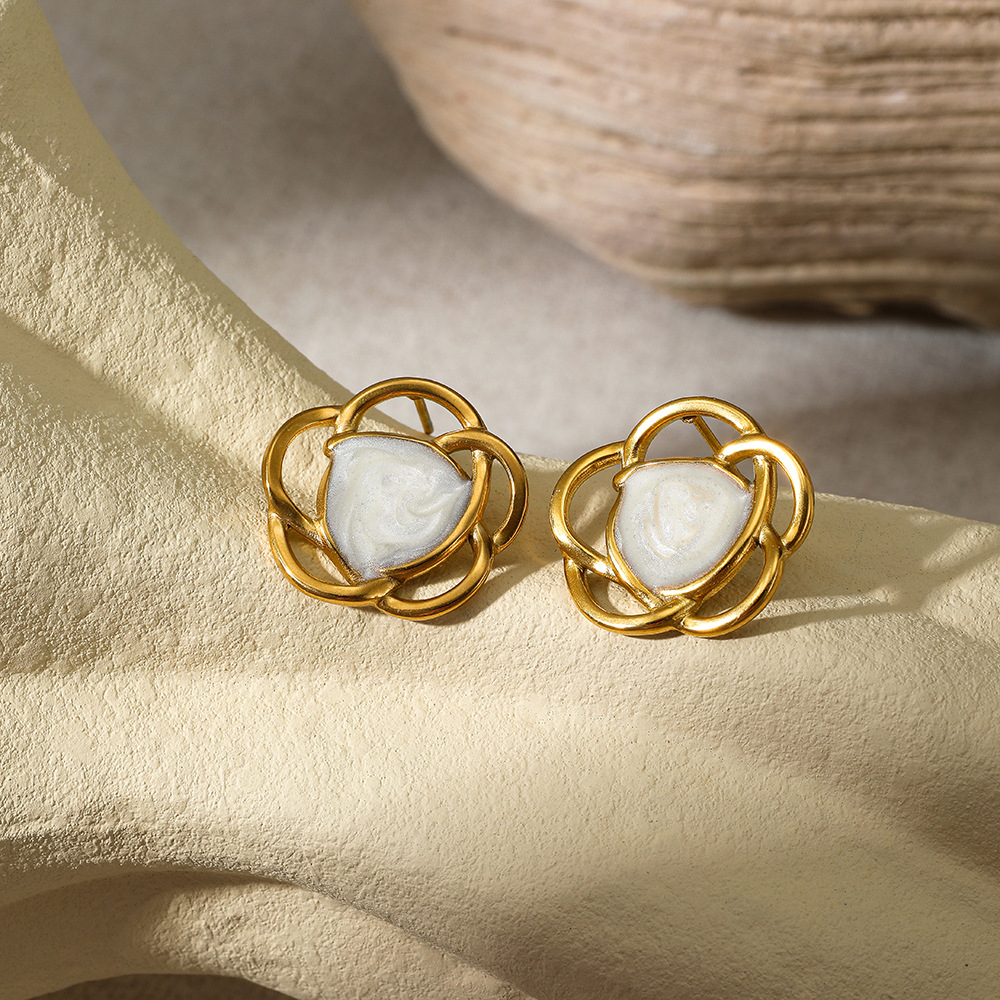 Arete de acero inoxidable , acero inoxidable 304, Flor, 18K chapado en oro, para mujer & esmalte & hueco, más colores para la opción, Vendido por Par