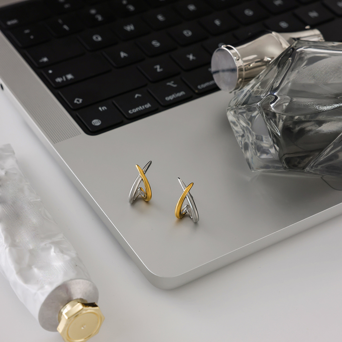 Arete de acero inoxidable , acero inoxidable 304, chapado, para mujer & 2-tono & hueco, Vendido por Par
