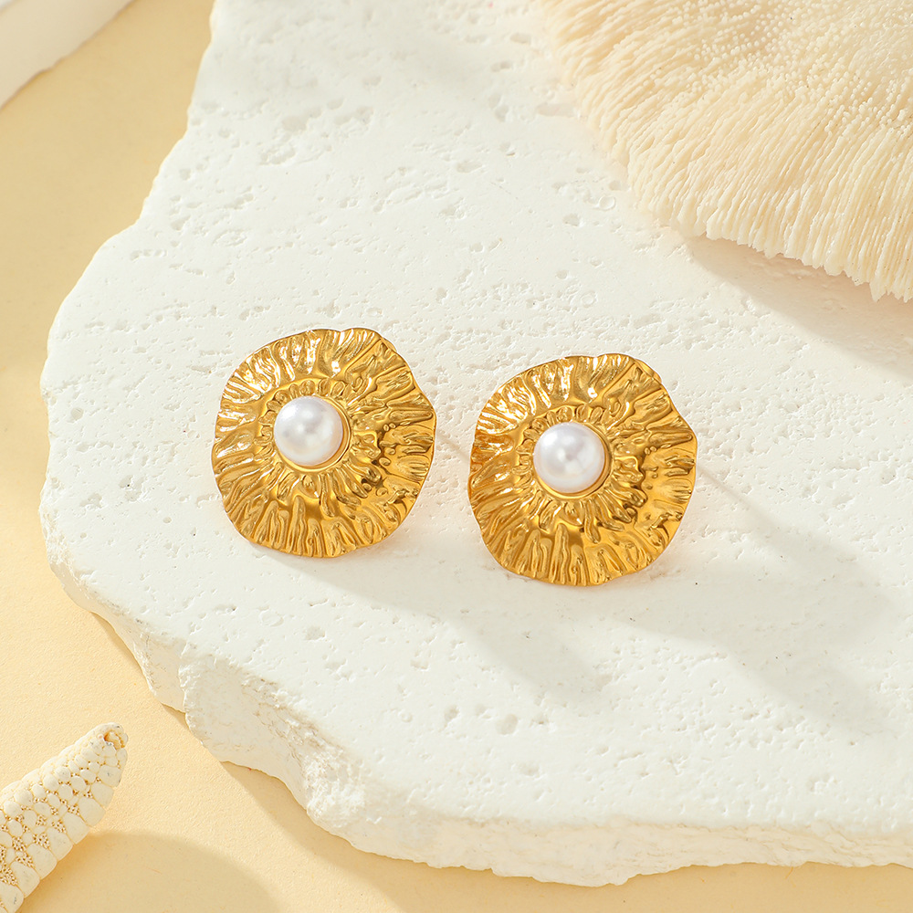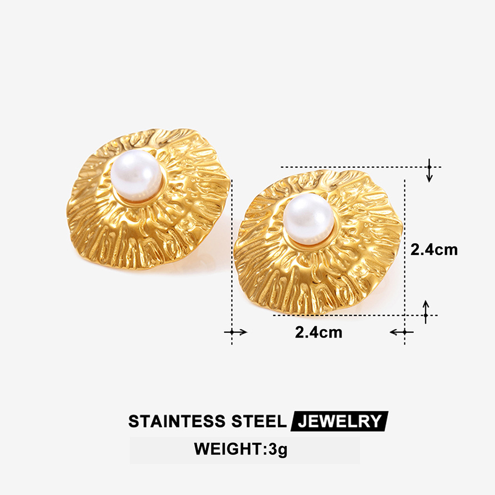 Arete de acero inoxidable , acero inoxidable 304, con Perlas plásticas, Hoja de loto, 18K chapado en oro, Joyería & para mujer, Vendido por Par