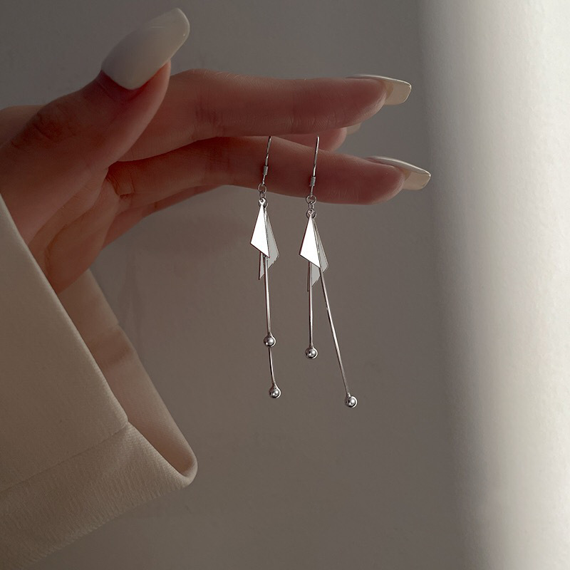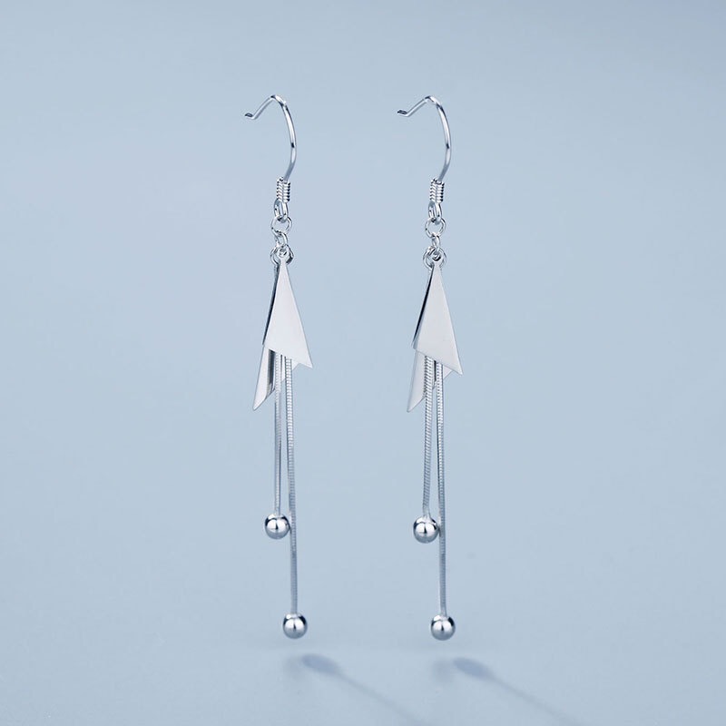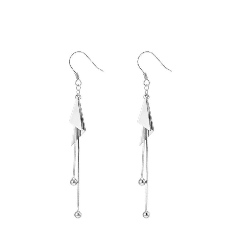 Plata de ley 925 Pendientes con Colgantes, Triángulo, chapado en platina real, Joyería & diferentes estilos para la opción & para mujer, 45mm, Vendido por Par