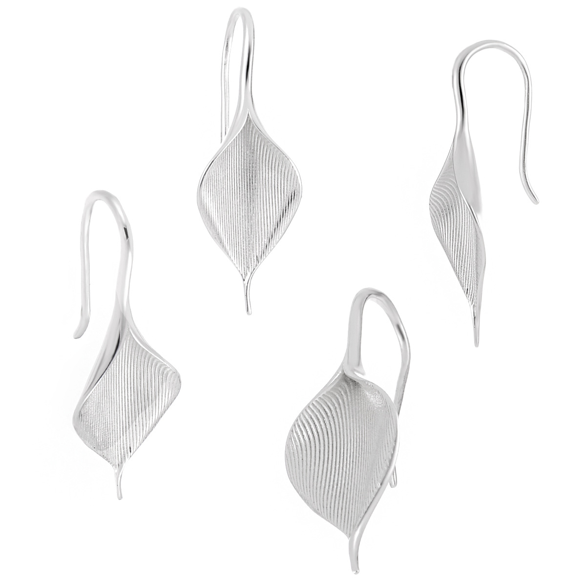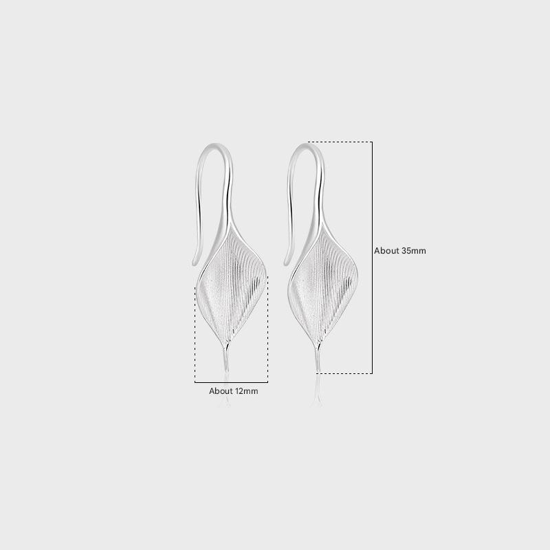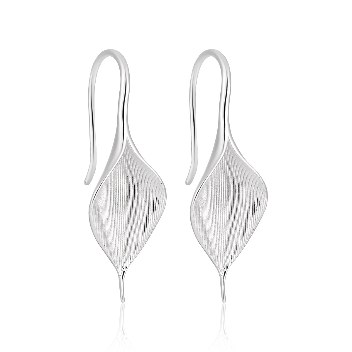 Plata de ley 925 Pendientes con Colgantes, Hoja del arce, cepillado & para mujer, plateado, 12x35mm, Vendido por Par