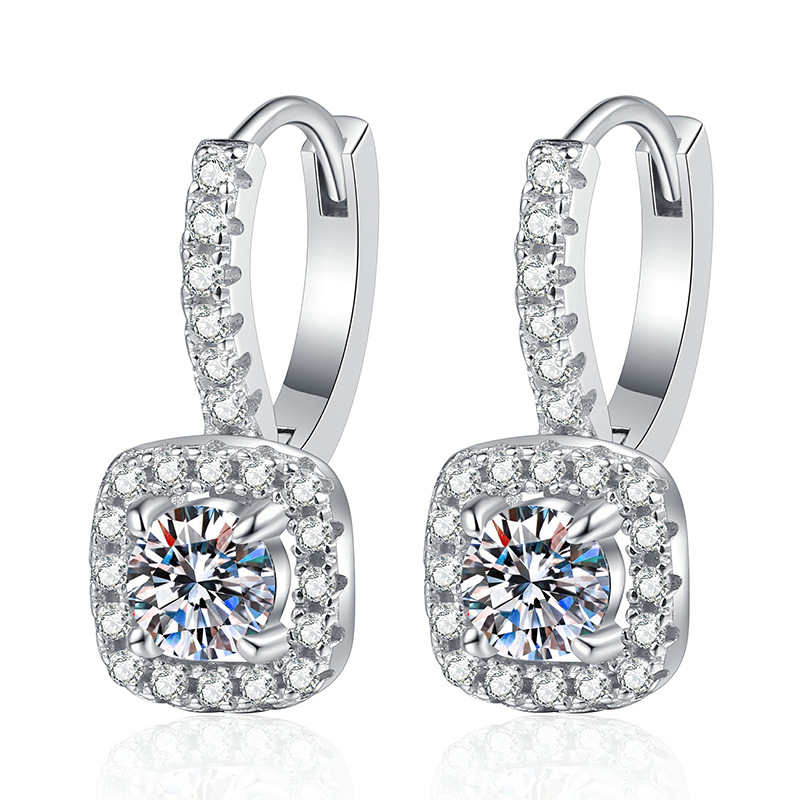 Plata de ley 925 Anilla Aro Pendiente, Cuadrado, chapado en platina real, diferentes materiales para la opción & para mujer, 13.5x20mm, Vendido por Par