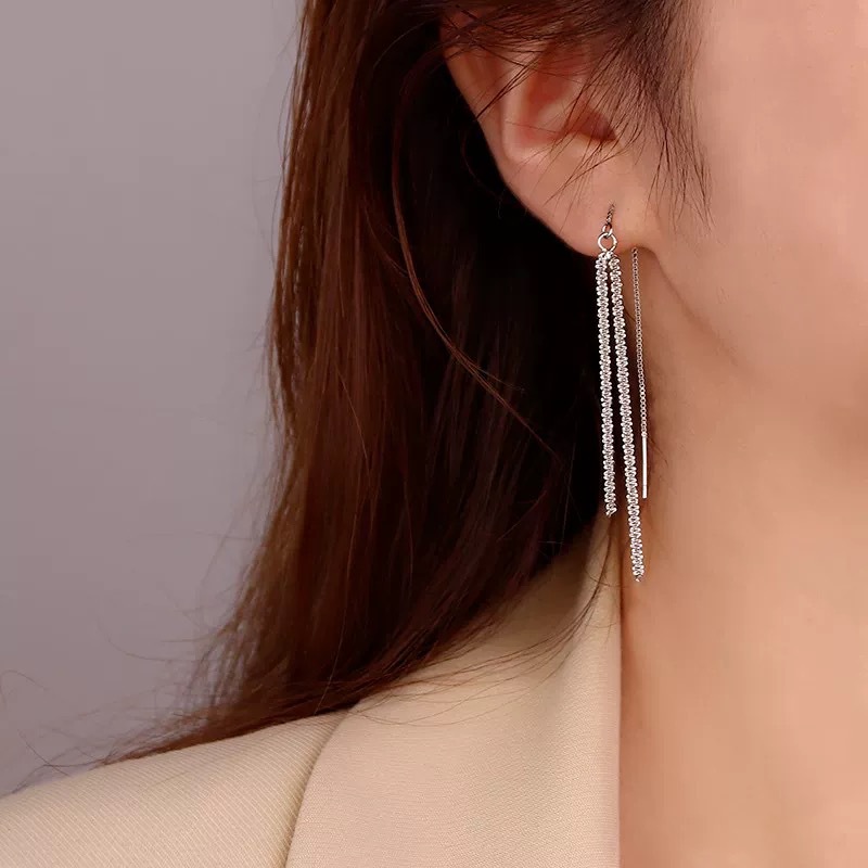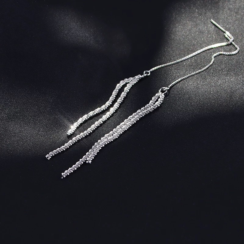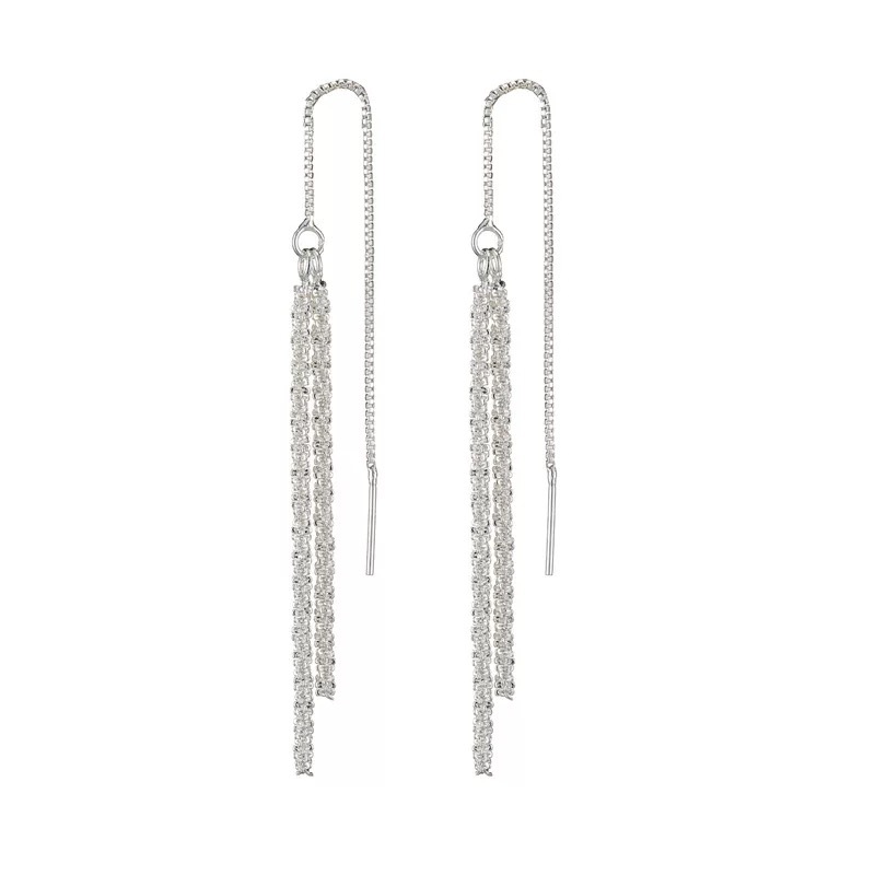 plata de ley 925 Pendiente de hilo, para mujer, 108mm, Vendido por Par