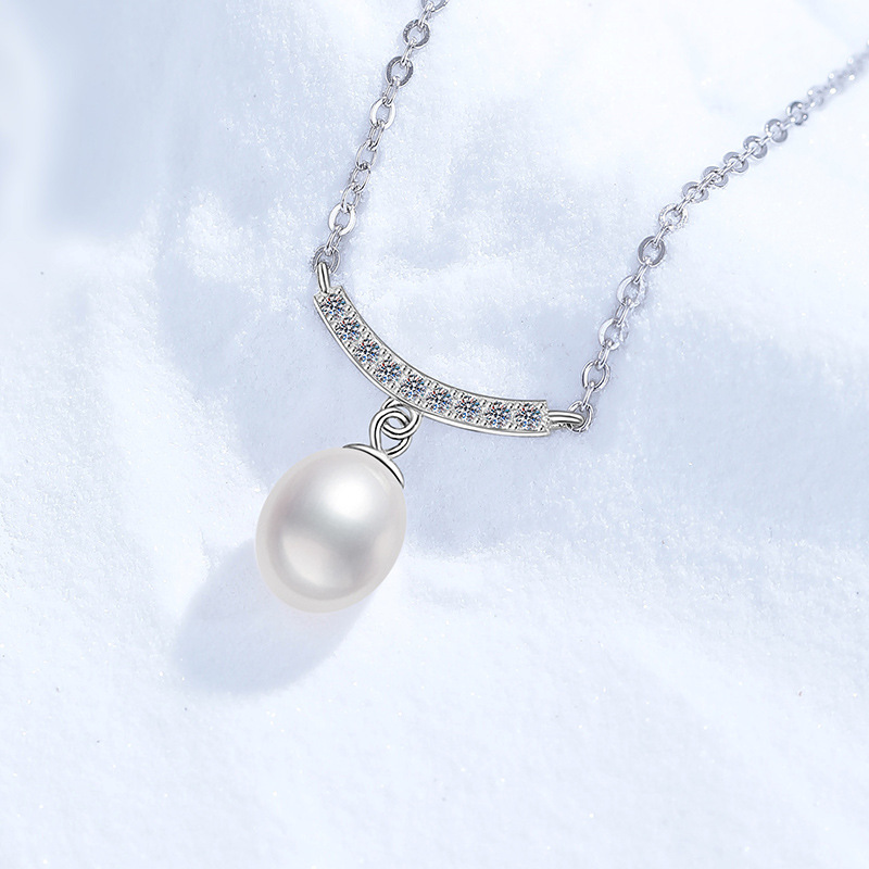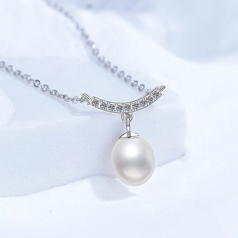 Plata de ley 925 collar, con Moissanite & Perlas cultivadas de agua dulce, con 2inch extender cadena, Cadena cruzada & para mujer, longitud:aproximado 15.7 Inch, Vendido por UD
