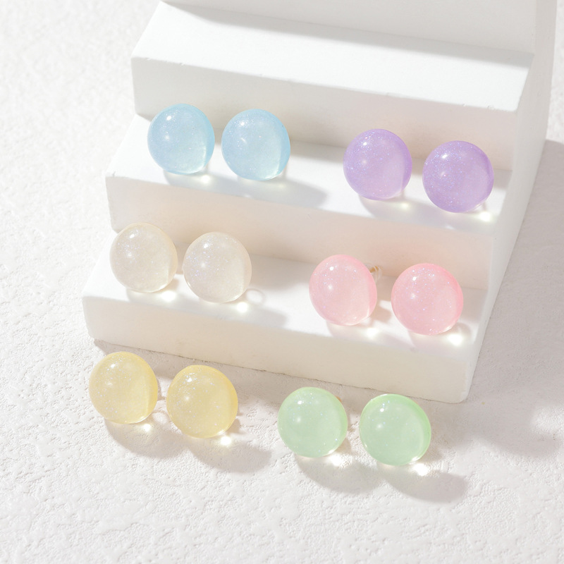 perlas de resina Arito, hierro aguja de pendiente, Esférico, chapado en color de platina, color mixto, 4mm, 12parespareja/Bolsa, Vendido por Bolsa