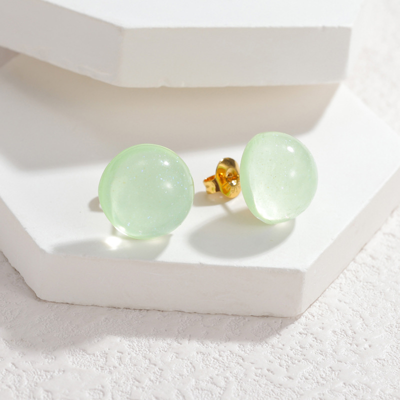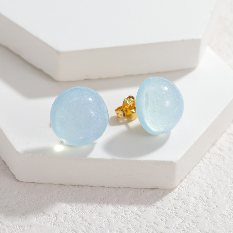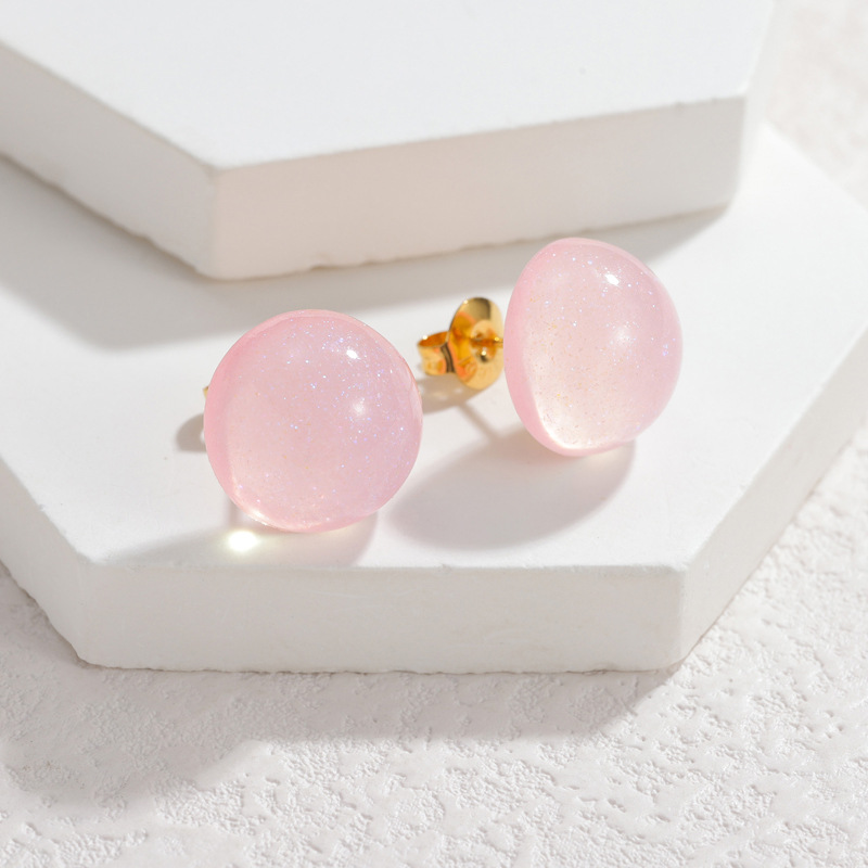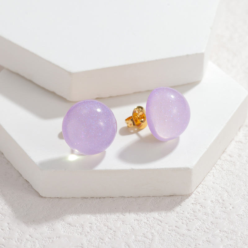 Arito de resina, hierro aguja de pendiente, Cúpula, chapado en color de platina, color mixto, 8mm, 12parespareja/Bolsa, Vendido por Bolsa