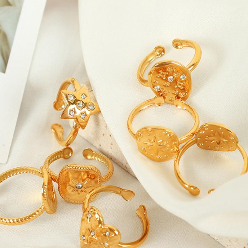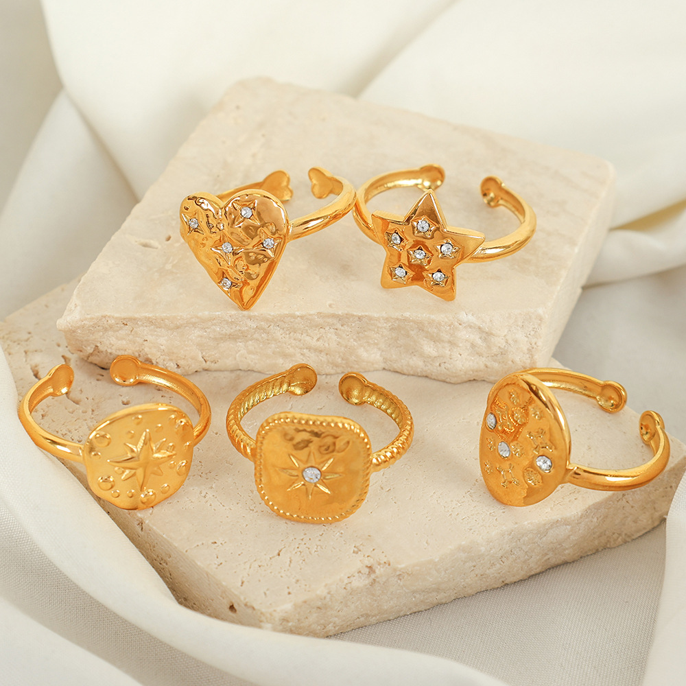Anilo de dedo de acero inoxidable, acero inoxidable 304, diferentes estilos para la opción & para mujer & con diamantes de imitación, dorado, tamaño:7, Vendido por UD
