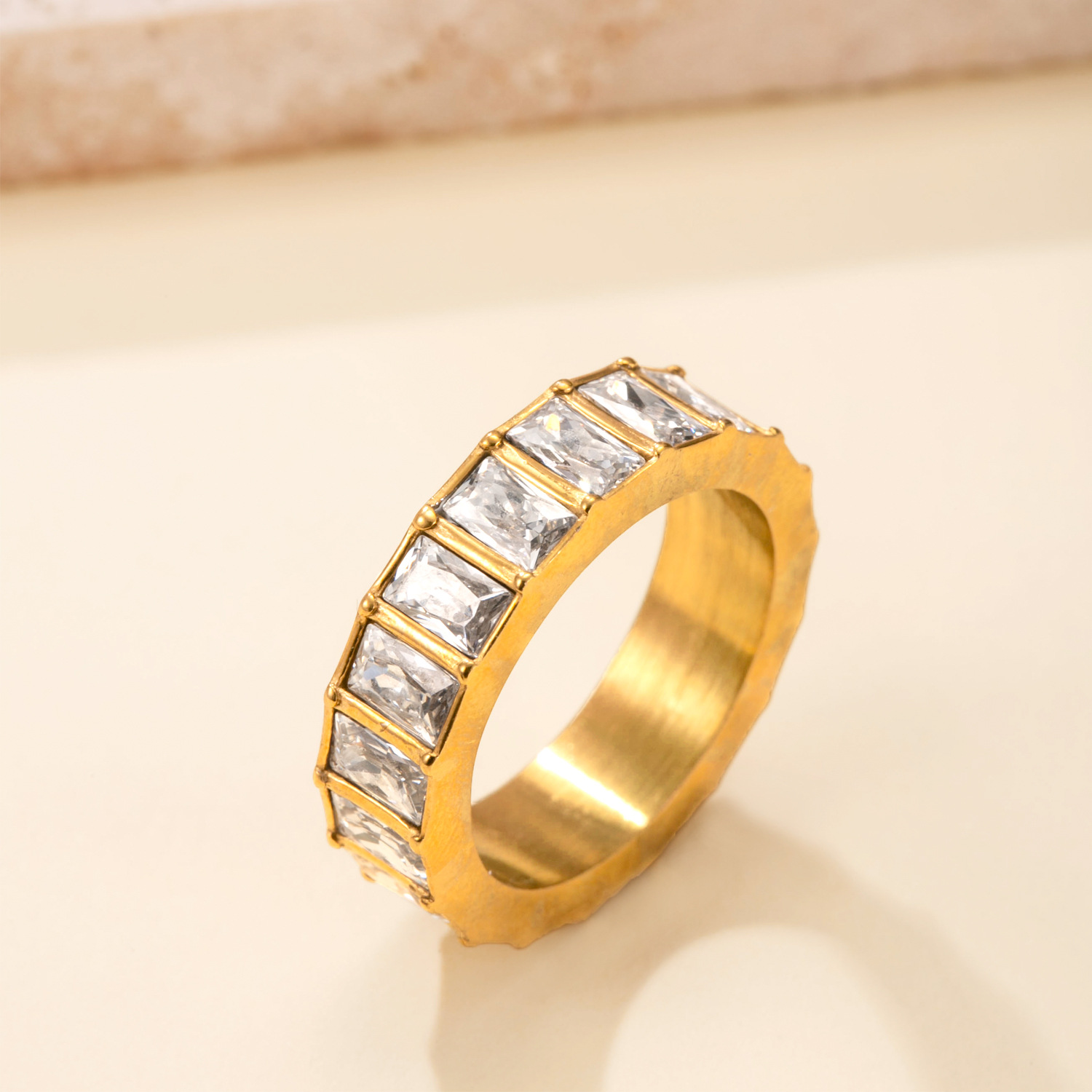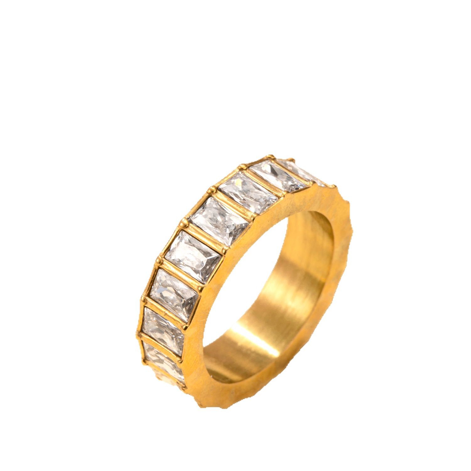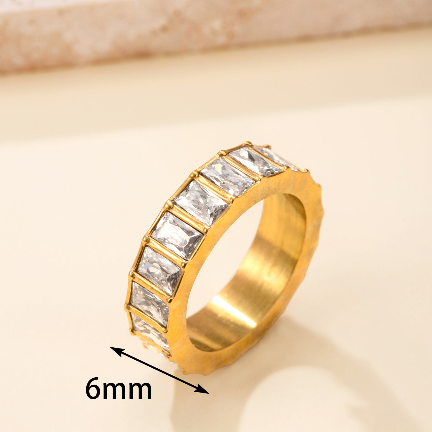 Anilo de dedo de acero inoxidable, con diamantes de imitación, 6mm, 19mm, tamaño:9, Vendido por UD
