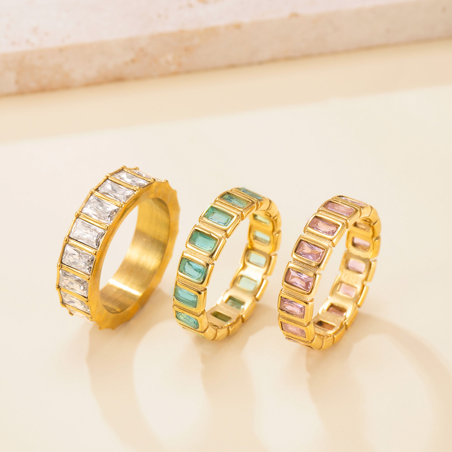 Anilo de dedo de acero inoxidable, para mujer & con diamantes de imitación, dorado, 4mm, 36PCs/Caja, Vendido por Caja