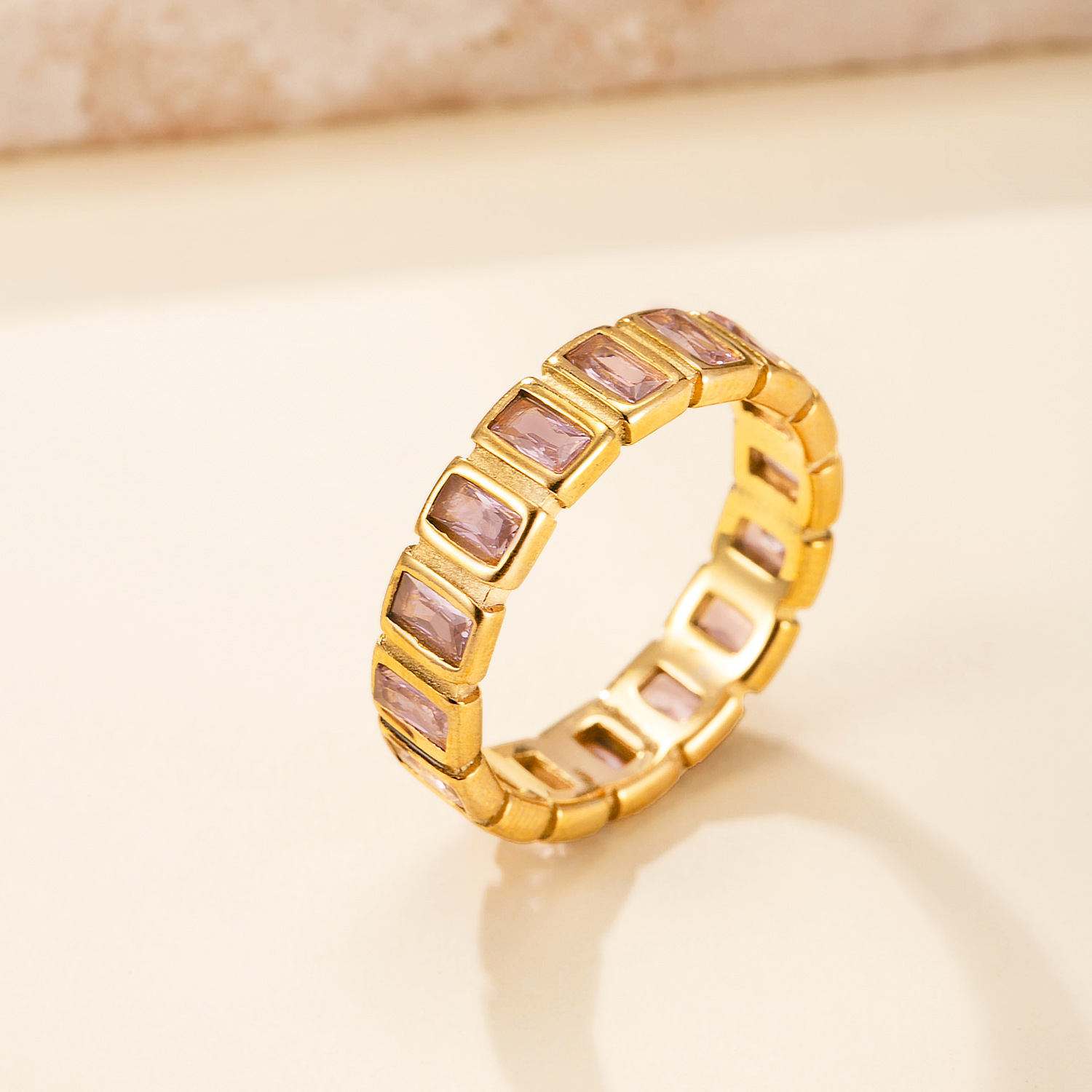 Anilo de dedo de acero inoxidable, con diamantes de imitación, tamaño:9, Vendido por UD