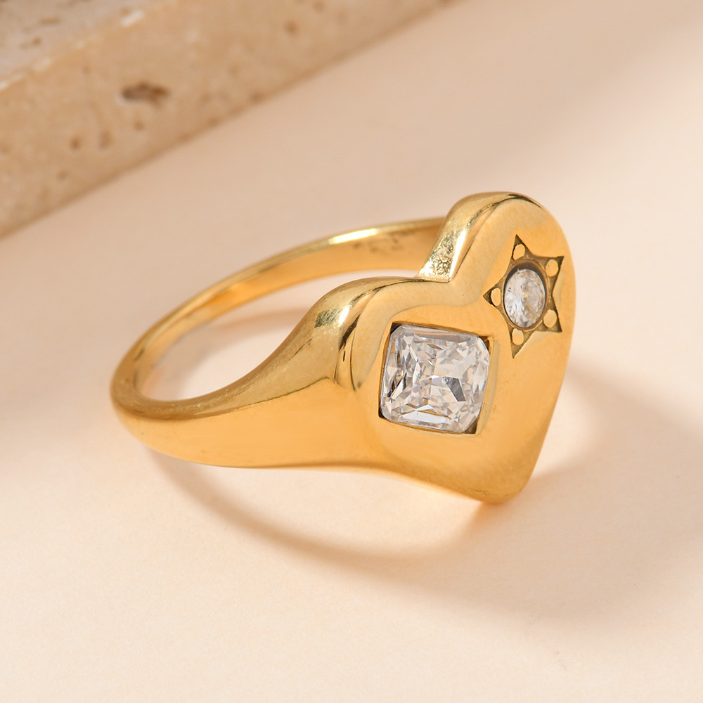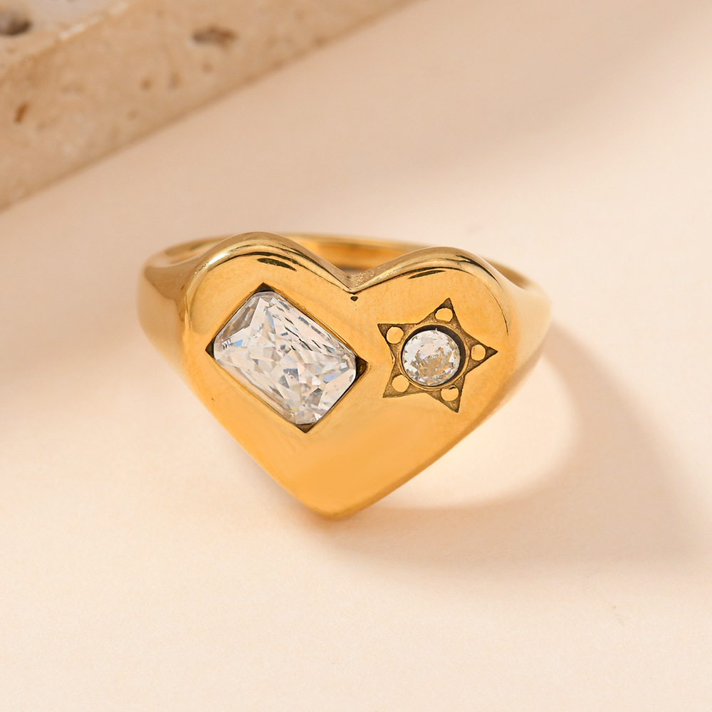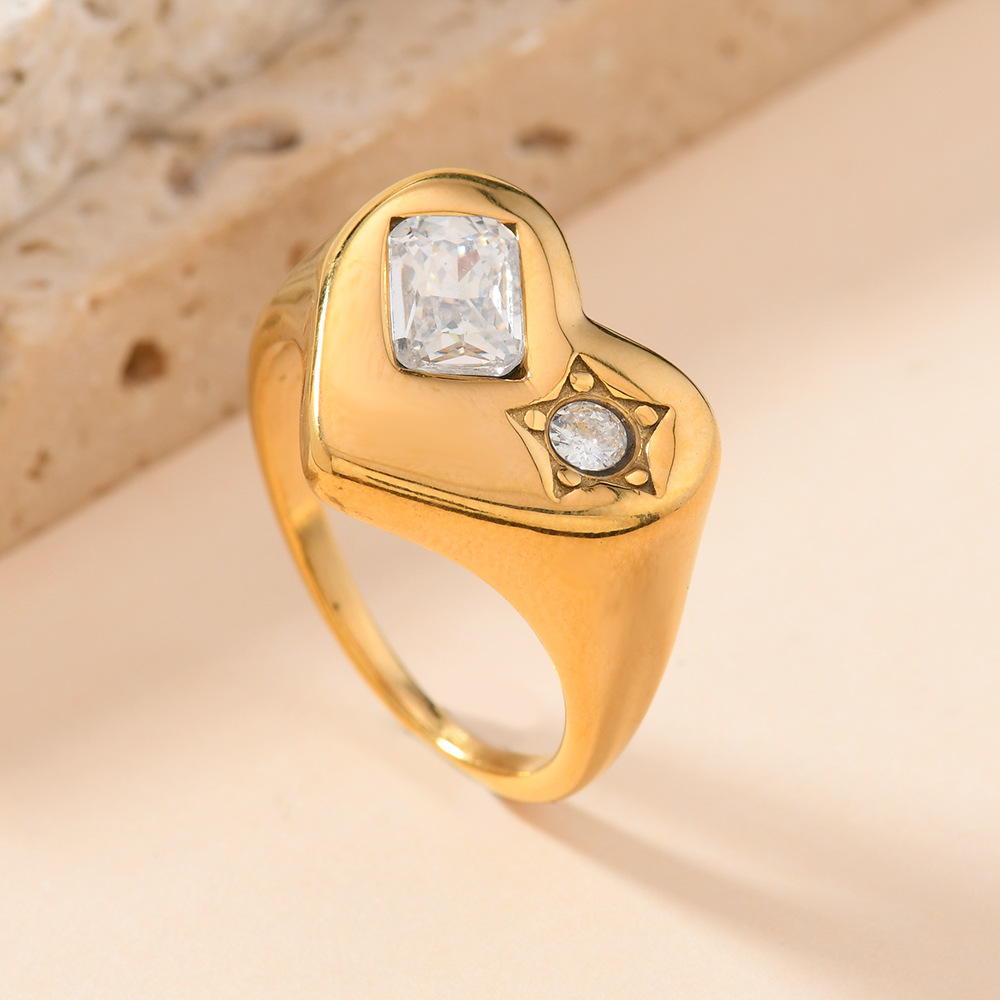Anilo de dedo de acero inoxidable, con diamantes de imitación, tamaño:9, Vendido por UD