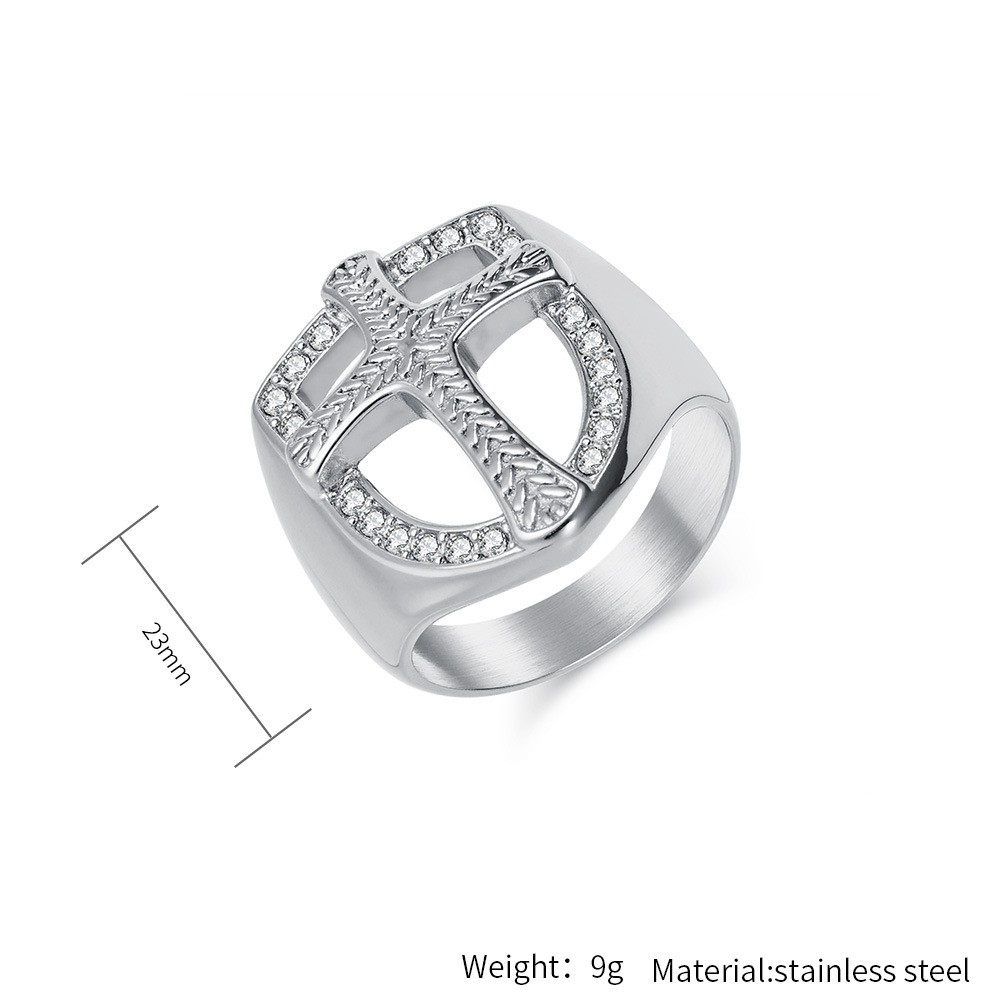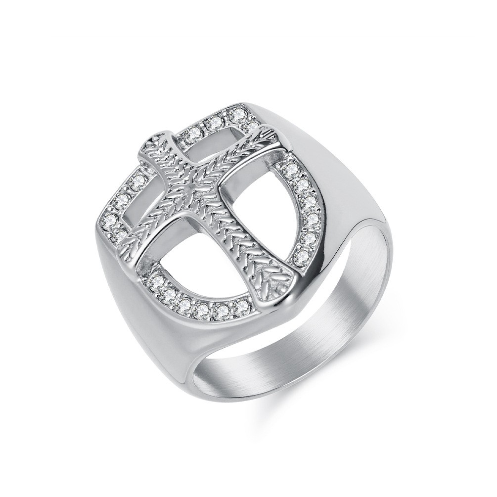 Anilo de dedo de acero inoxidable, con diamantes de imitación, tamaño:9, Vendido por UD