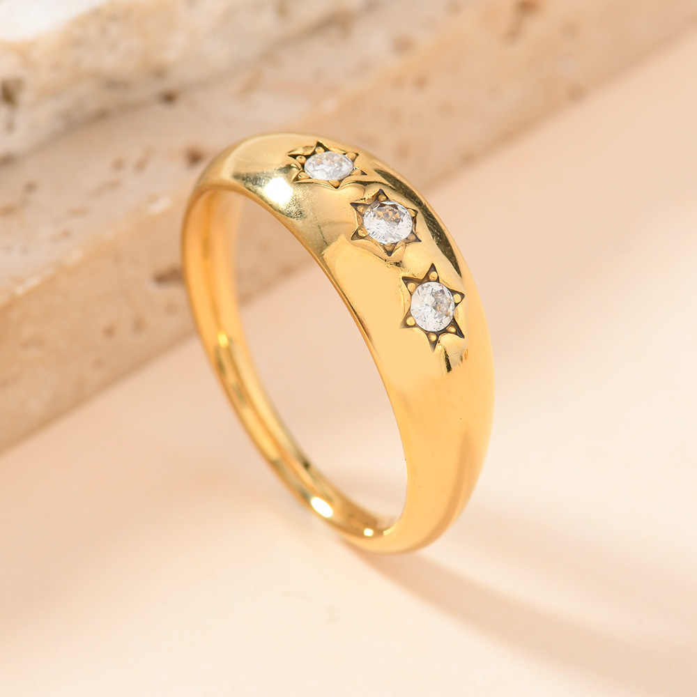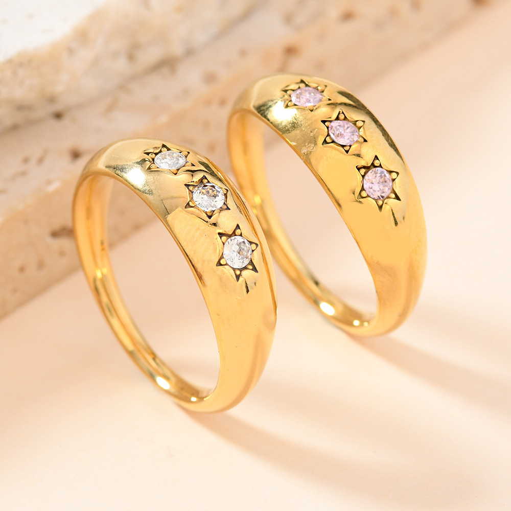 Anilo de dedo de acero inoxidable, para mujer & con diamantes de imitación, dorado, 4mm, 36PCs/Caja, Vendido por Caja