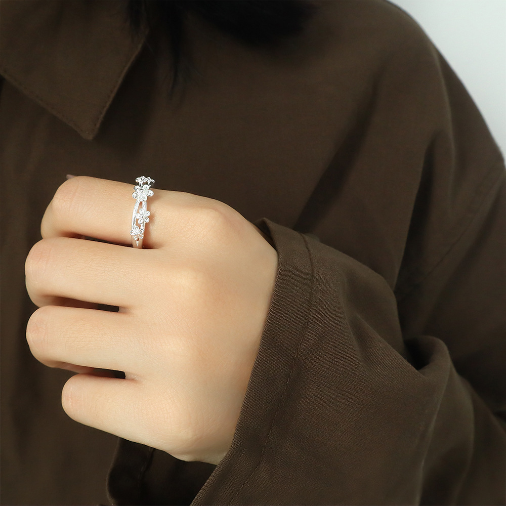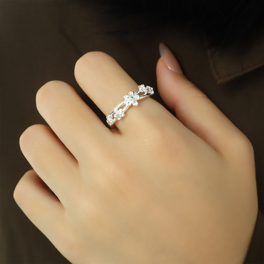 Anillo de dedo de latón, metal, Pétalos, chapado, para mujer, color de platina, Vendido por UD