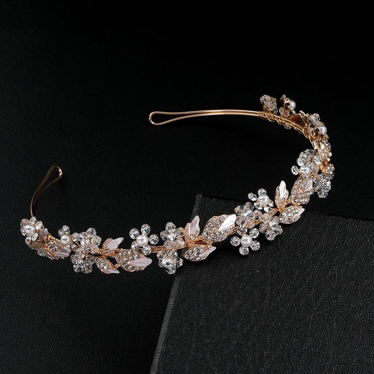 Banda del Pelo, aleación de zinc, con alambre de latón & Cristal & Perlas plásticas, hecho a mano, Joyería & para mujer & con diamantes de imitación, más colores para la opción, Vendido por UD