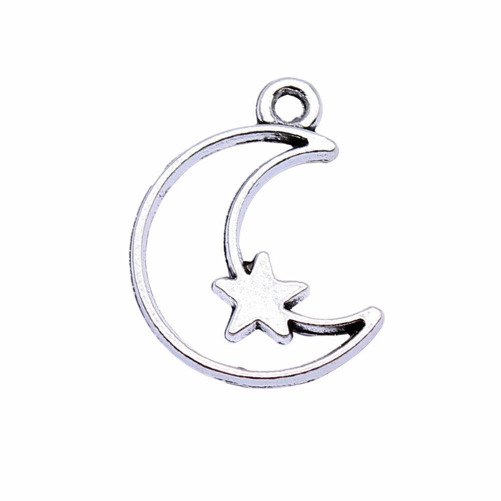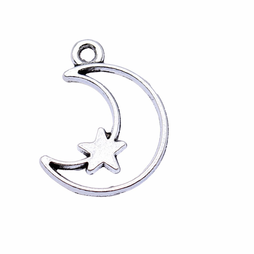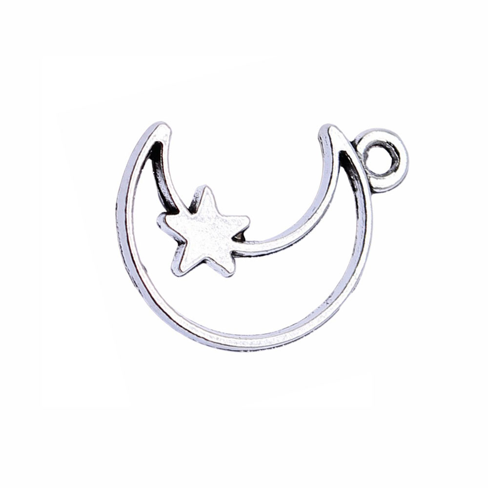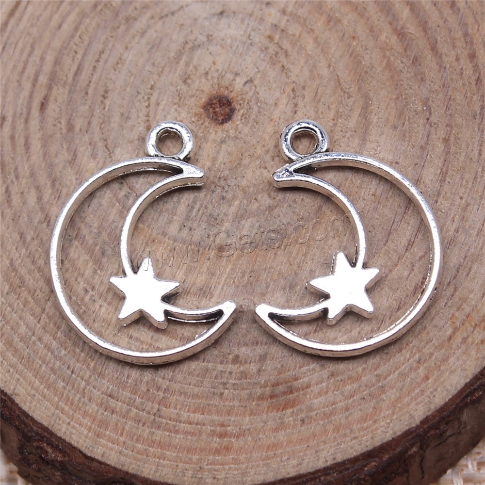 Colgante de la aleación del cinc, aleación de zinc, Luna y estrella, chapado en color de plata antigua, Vintage & unisexo, 14x16mm, Vendido por UD