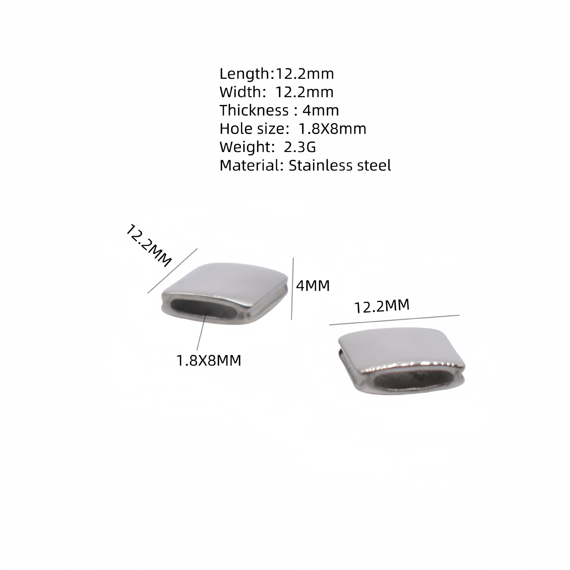 Abalorios de acero inoxidable, acero inoxidable 304, Cuadrado, chapado, Bricolaje, Vendido por UD