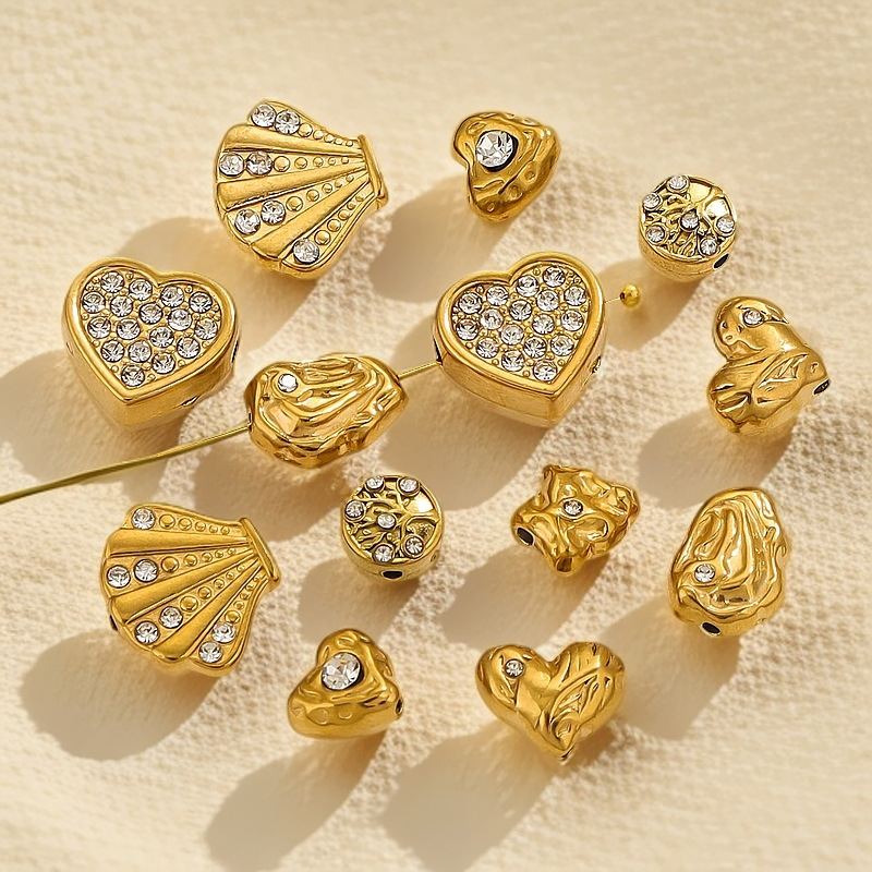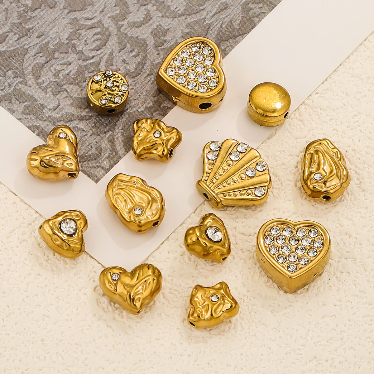Abalorios de acero inoxidable, acero inoxidable 304, chapado en color dorado, Bricolaje & diferentes estilos para la opción & micro arcilla de zirconia cúbica, 10PCs/Bolsa, Vendido por Bolsa