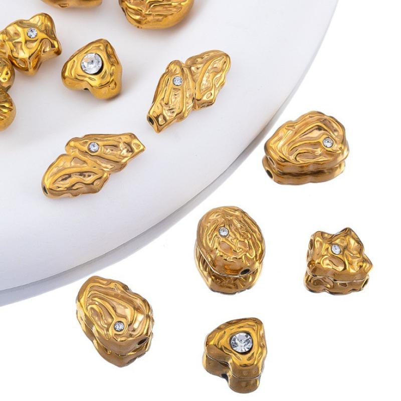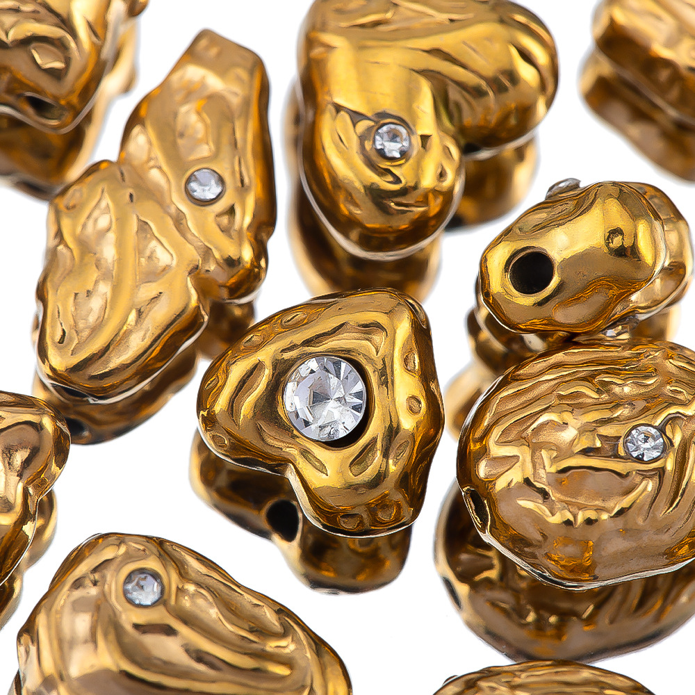 Abalorios de acero inoxidable, acero inoxidable 304, chapado, Bricolaje & diferentes estilos para la opción & micro arcilla de zirconia cúbica, dorado, 2PCs/Bolsa, Vendido por Bolsa