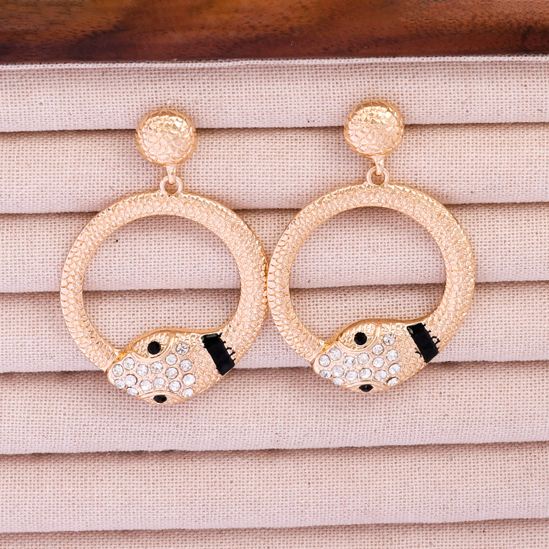 pendiente gota de aleación de cinc de diamantes de imitación, aleación de zinc, Serpiente, chapado en color dorado, Joyería & para mujer & con diamantes de imitación, 37x56mm, Vendido por Par