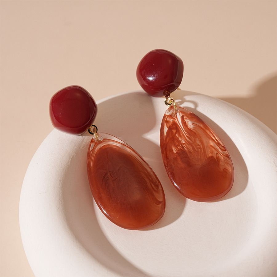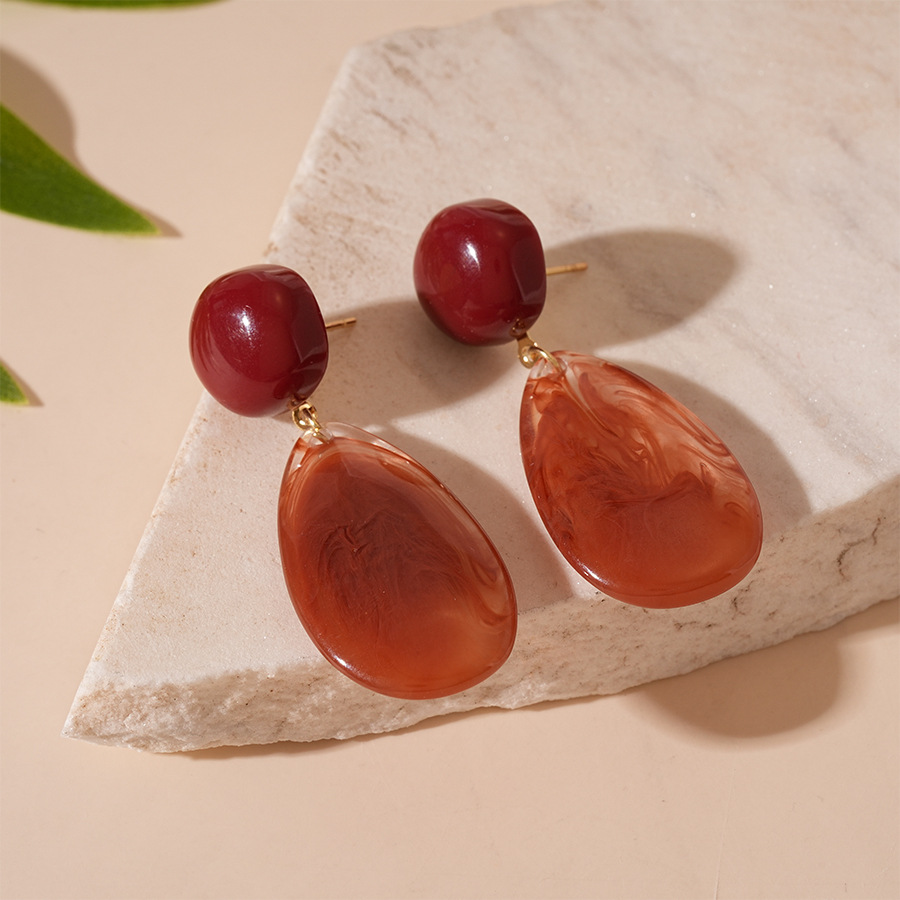 Pendiente criollo de resina, metal, con resina, Gota, chapado, Joyería & para mujer, Rojo, 52x20mm, Vendido por Par