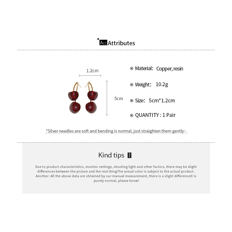 Pendiente criollo de resina, metal, con resina, Cereza, chapado, Joyería & para mujer, más colores para la opción, Vendido por Par