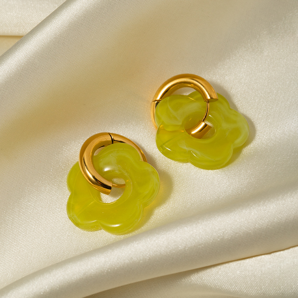Pendiente criollo de resina, acero inoxidable 304, con resina, Flor, 18K chapado en oro, Joyería & para mujer & hueco, Vendido por Par