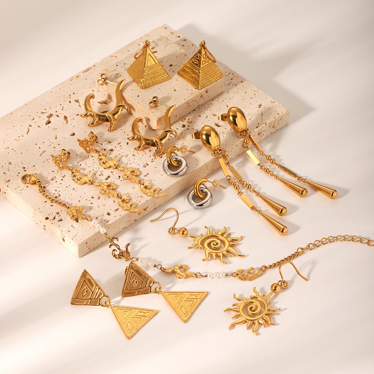 Acero inoxidable gota pendiente, acero inoxidable 304, chapado en color dorado, Joyería & diferentes patrones para la opción, dorado, Vendido por Par