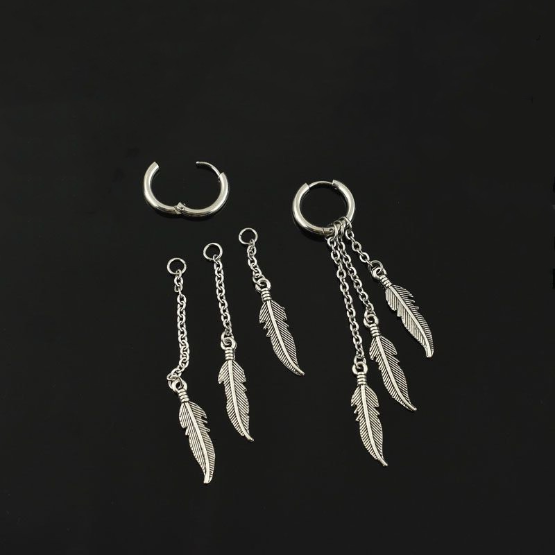 Steel-colored ear buckle chain leaves