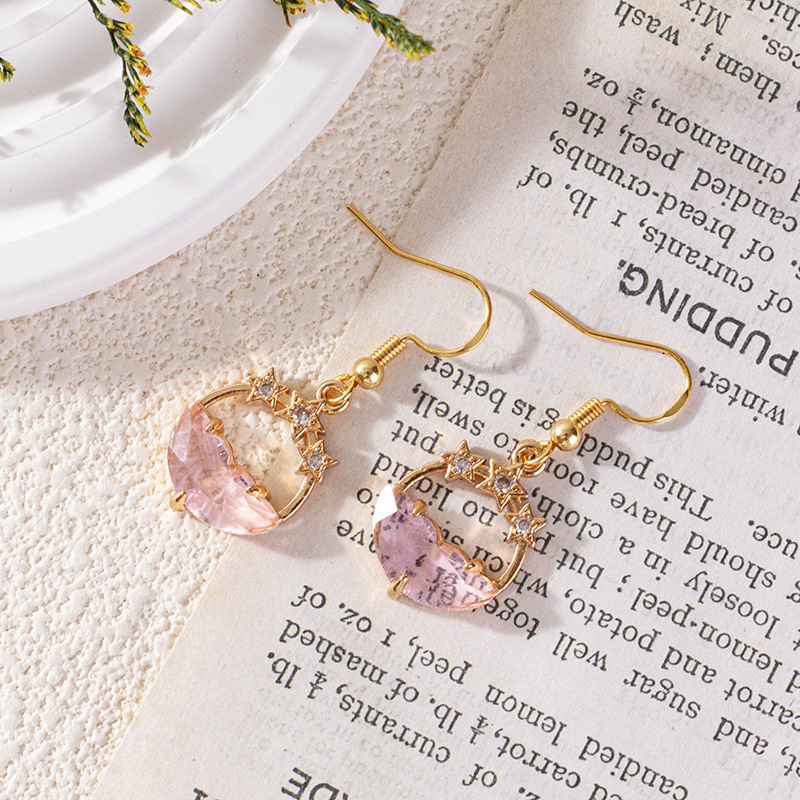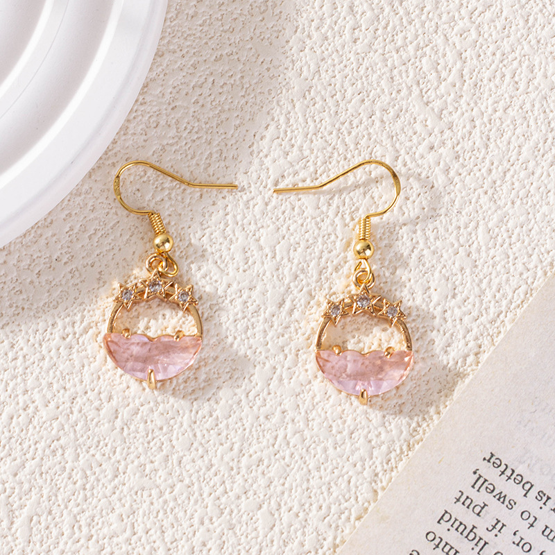 Pendiente de cuarzo, metal, con cuarzo rosado, chapado, para mujer & con diamantes de imitación, Rosado, 15mm, Vendido por Par