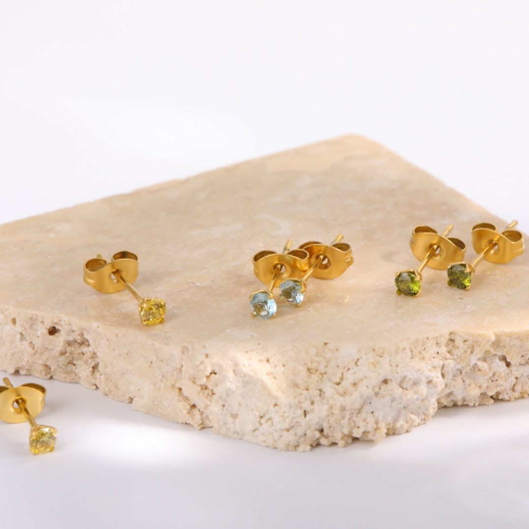 Arete de acero inoxidable con zirconia cúbica, con circonia cúbica, más colores para la opción, 3x3mm, 10parespareja/Grupo, Vendido por Grupo