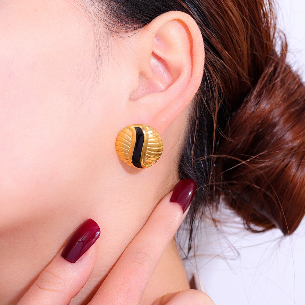 Arete de acero inoxidable , acero inoxidable 304, Esférico, 18K chapado en oro, Joyería & para mujer & esmalte, más colores para la opción, Vendido por Par