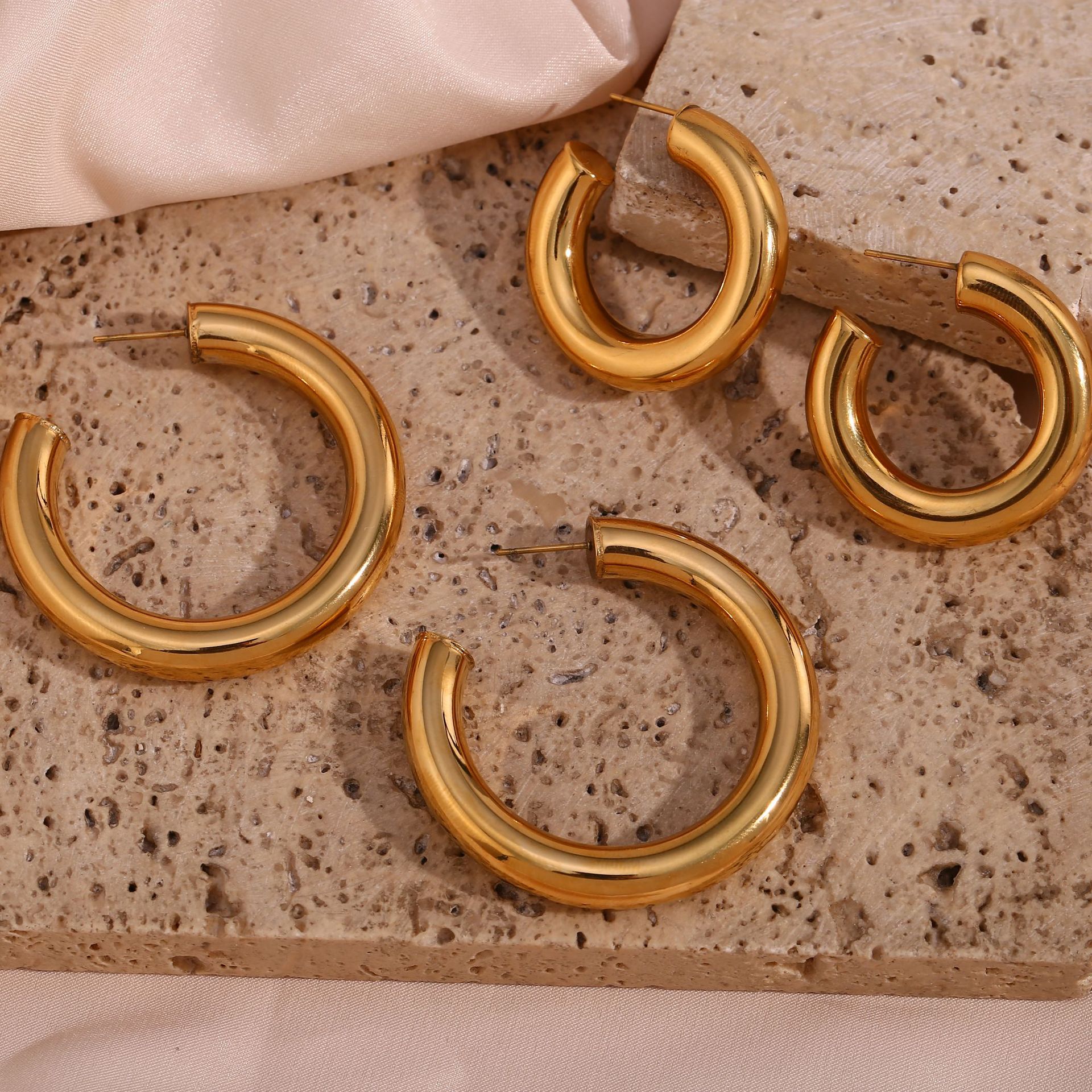 Arete de acero inoxidable , acero inoxidable 304, 18K chapado en oro, Joyería & diverso tamaño para la opción & para mujer, Vendido por Par