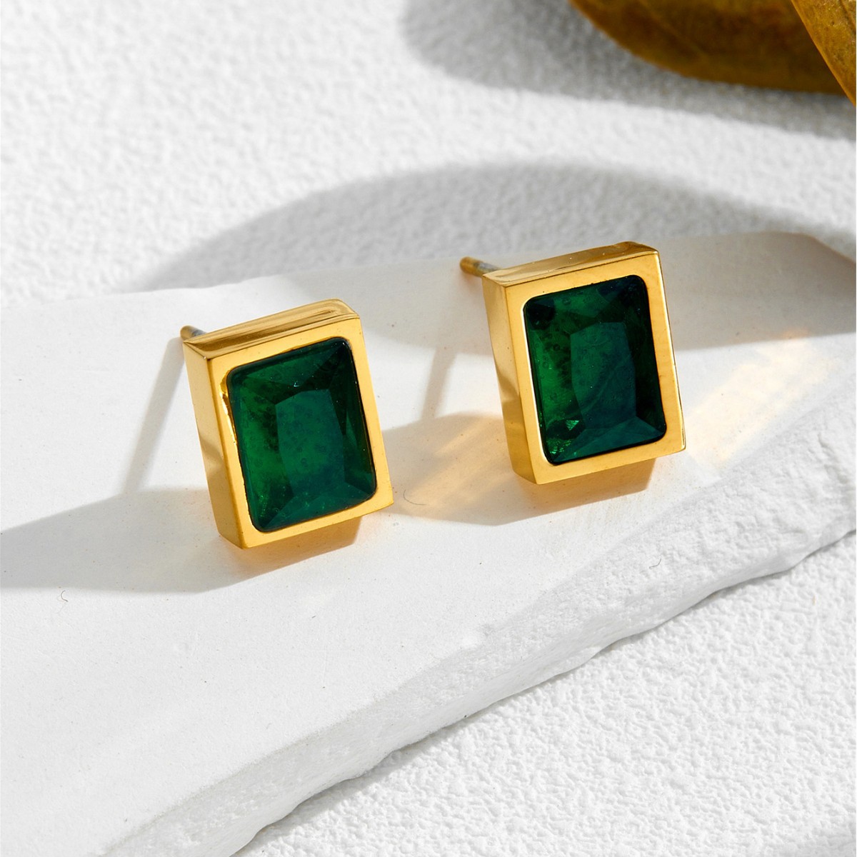 Arete de acero inoxidable , acero inoxidable 304, con cúbica circonia, Rectángular, chapado en oro de 18 K, Joyería & para mujer, 10x10x10mm, Vendido por Par