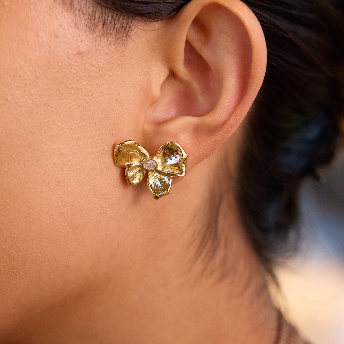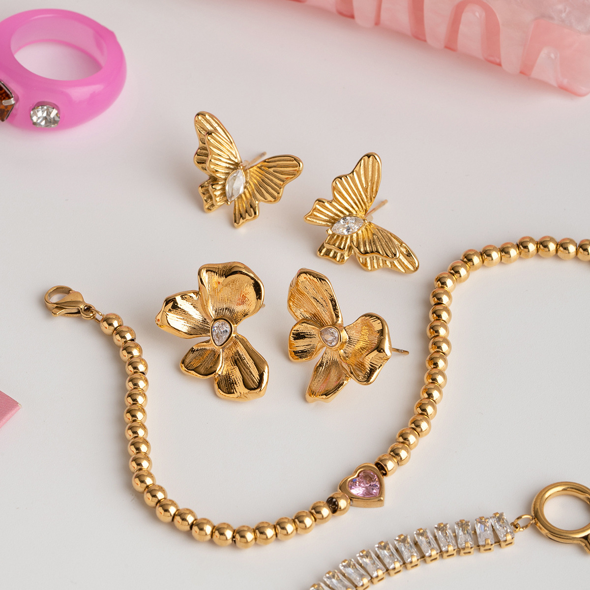 Arete de acero inoxidable , acero inoxidable 304, chapado en color dorado, Joyería & micro arcilla de zirconia cúbica, más colores para la opción, Vendido por Par