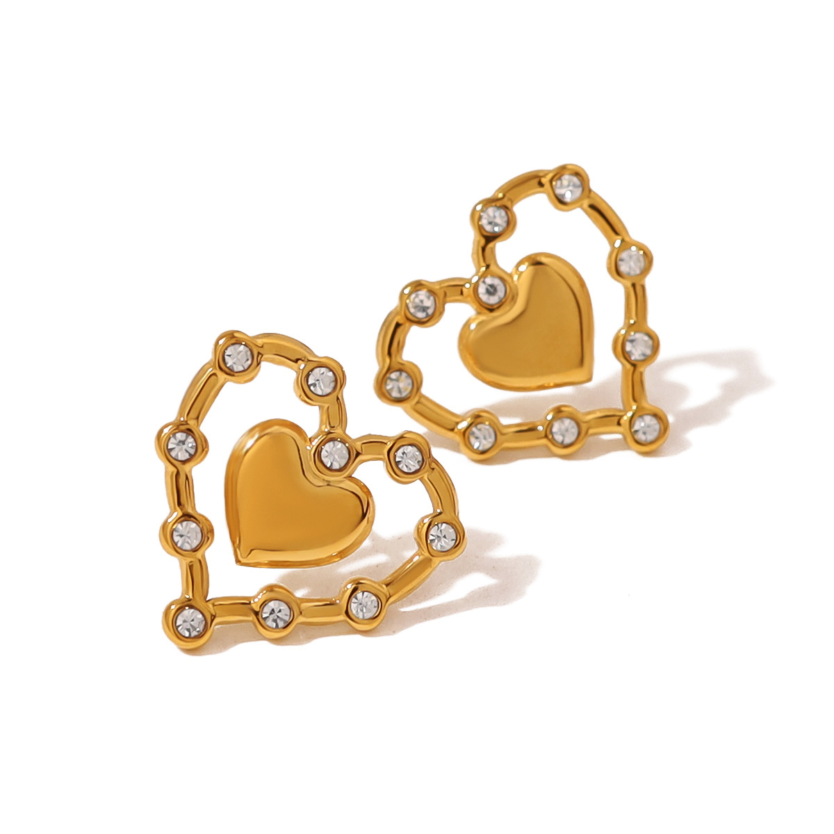 Arete de acero inoxidable , acero inoxidable aguja de pendiente, Corazón, 9x6.3mm, Vendido por Par