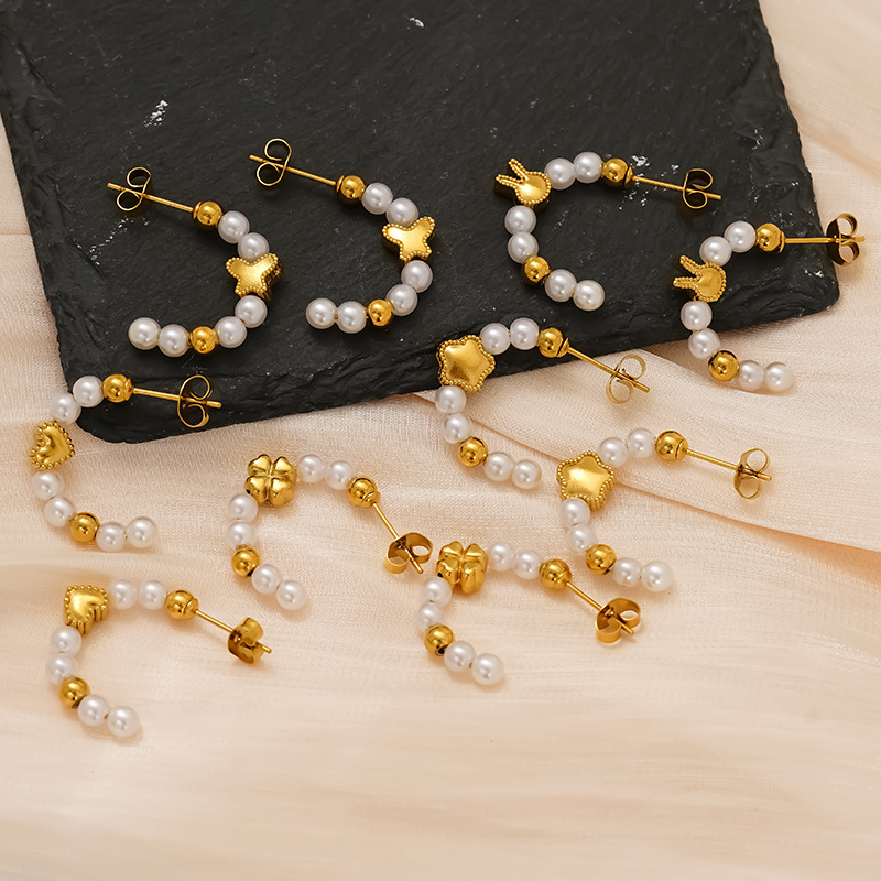 Arete de acero inoxidable , acero inoxidable 304, con Perlas plásticas, 18K chapado en oro, Joyería & diferentes estilos para la opción & para mujer, Vendido por Par