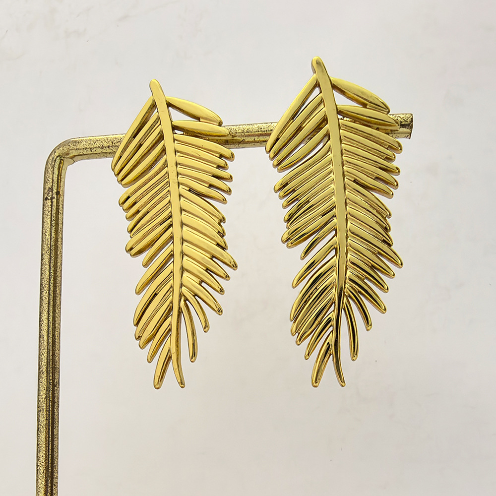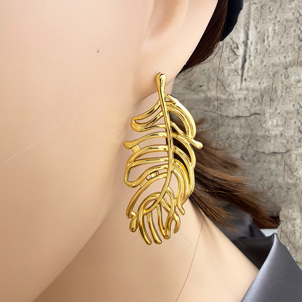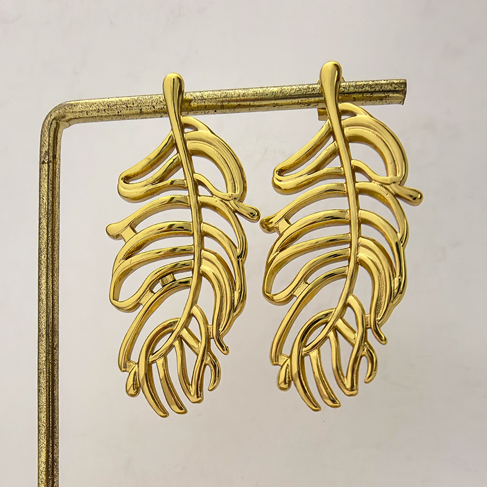 Arete de acero inoxidable , acero inoxidable 304, Hoja, 18K chapado en oro, Joyería & diferentes estilos para la opción & para mujer, Vendido por Par