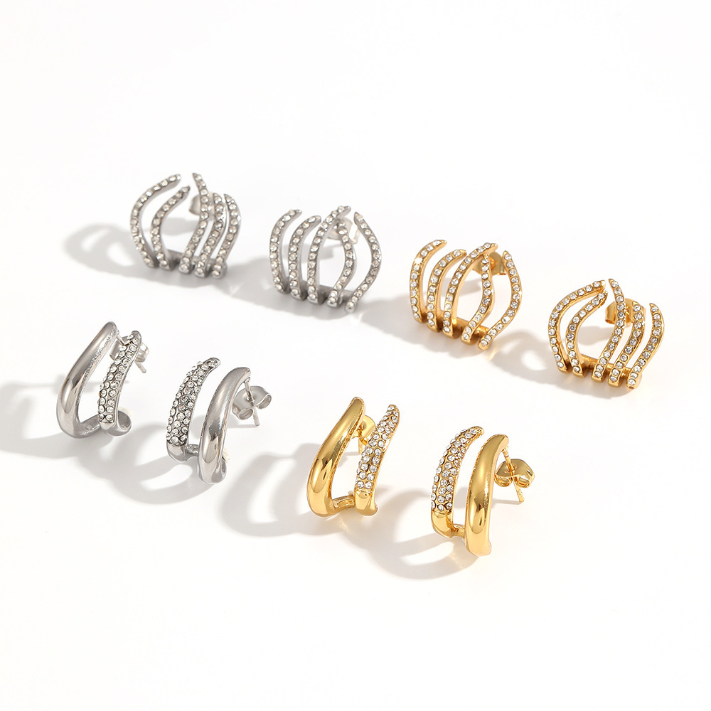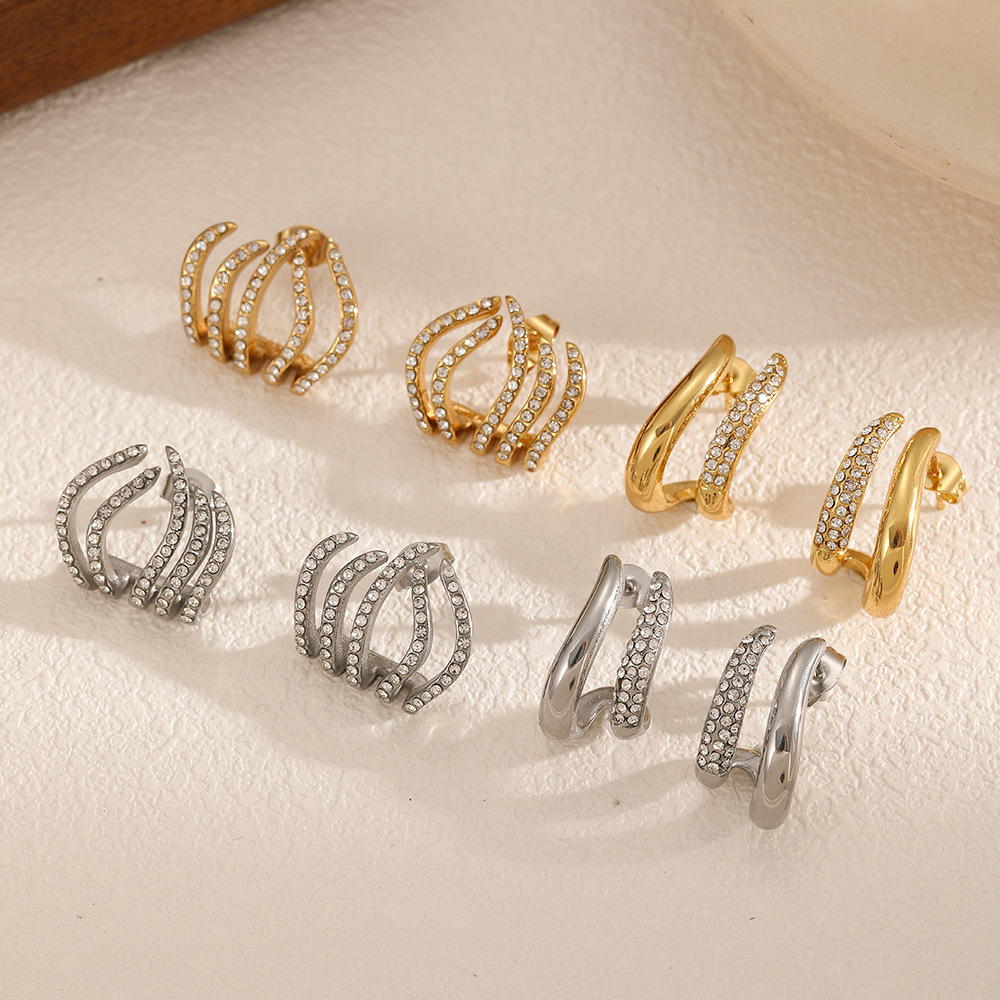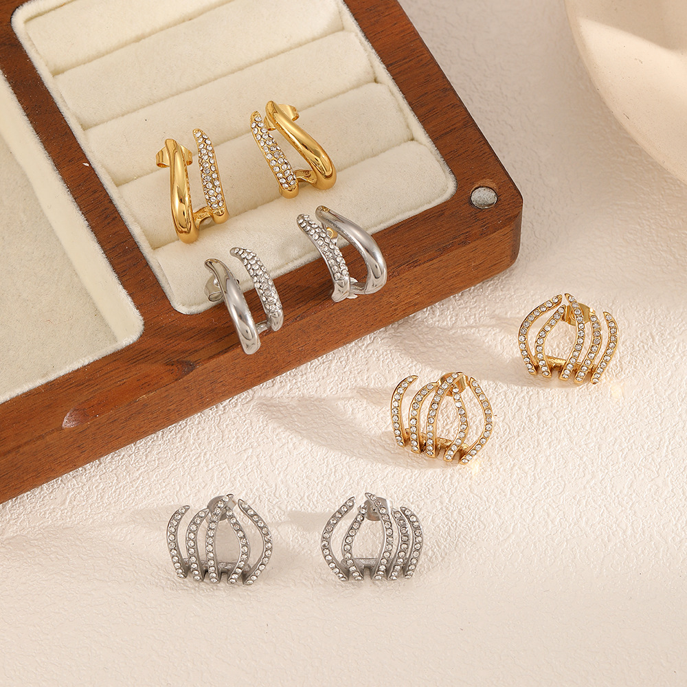 Arete de acero inoxidable , acero inoxidable 304, chapado, Joyería & con diamantes de imitación, más colores para la opción, Vendido por Par