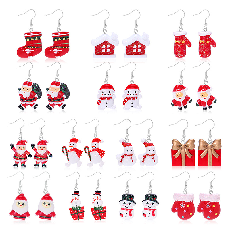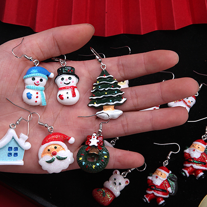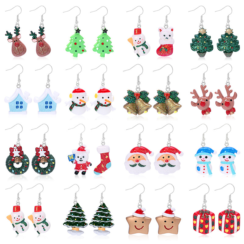Pendientes de Navidad, resina, con aleación de zinc, chapado, Diseño de Navidad & diferentes estilos para la opción & para mujer & esmalte, earring length 30-40mm, Vendido por Par