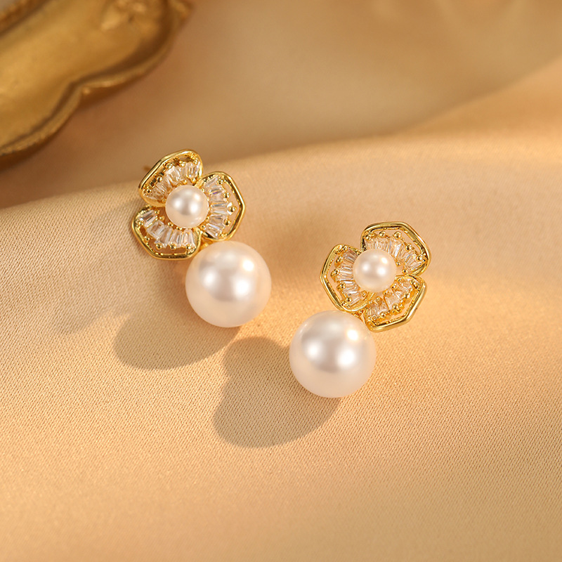 Cubic Zirconia Pendiente Brass Micro Pave, metal, con Perlas de plástico ABS, chapado en color dorado, Joyería & micro arcilla de zirconia cúbica, dorado, 13x23mm, Vendido por Par