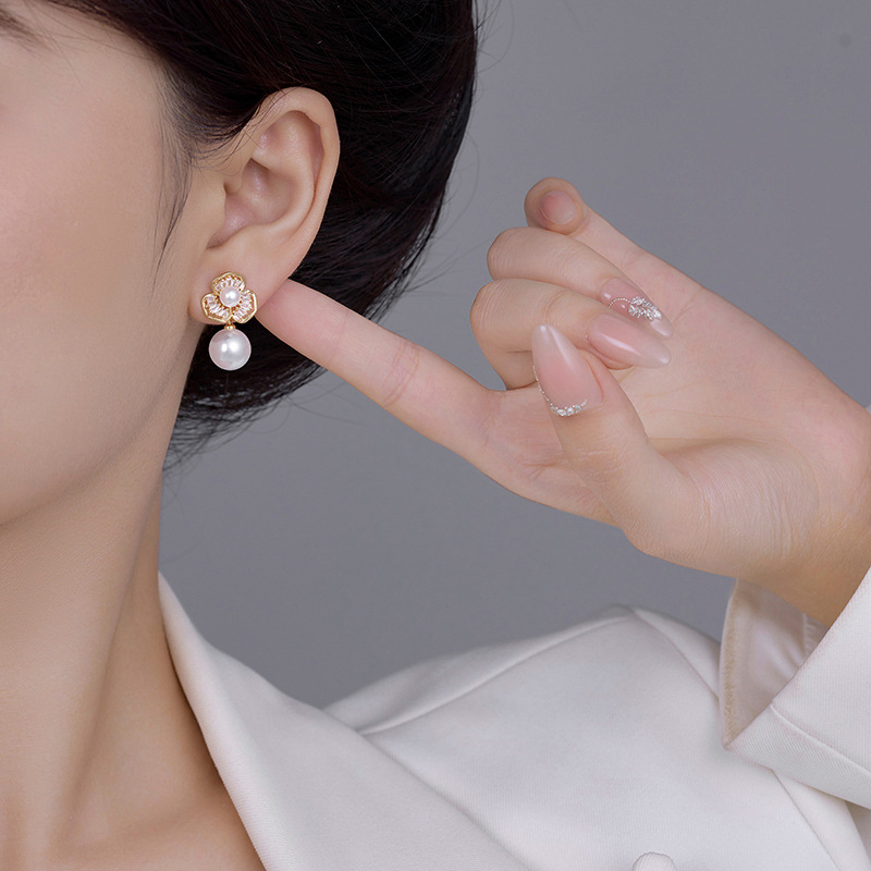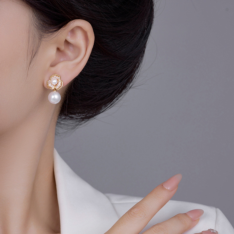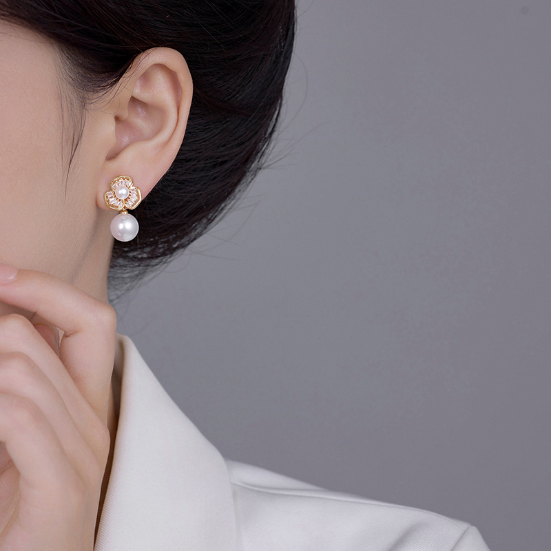 Cubic Zirconia Pendiente Brass Micro Pave, metal, Flor, chapado en oro de rosa real, micro arcilla de zirconia cúbica & para mujer, 14x17mm, Vendido por Par