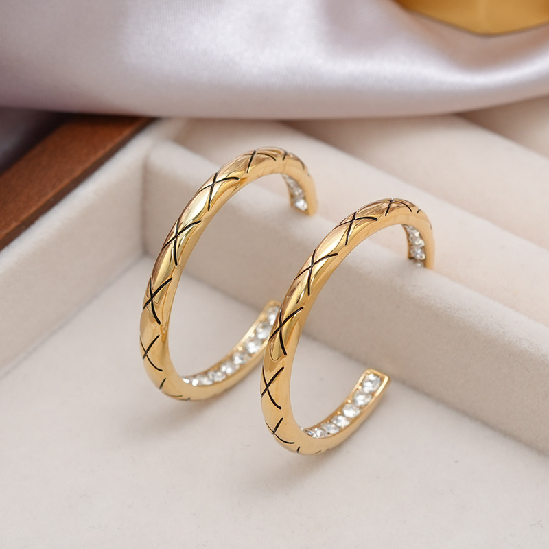 Cubic Zirconia Pendiente Brass Micro Pave, metal, chapado en color dorado, Joyería & micro arcilla de zirconia cúbica, dorado, 7x37mm, Vendido por Par