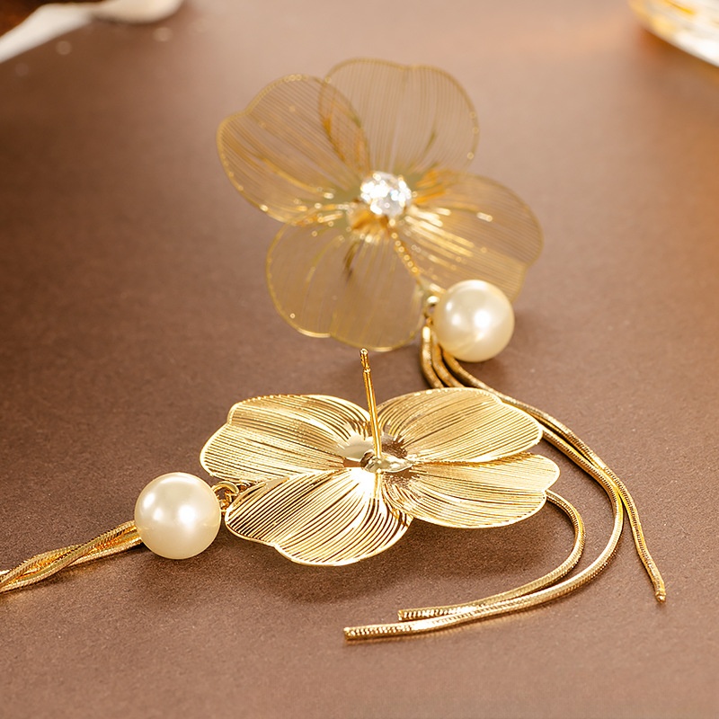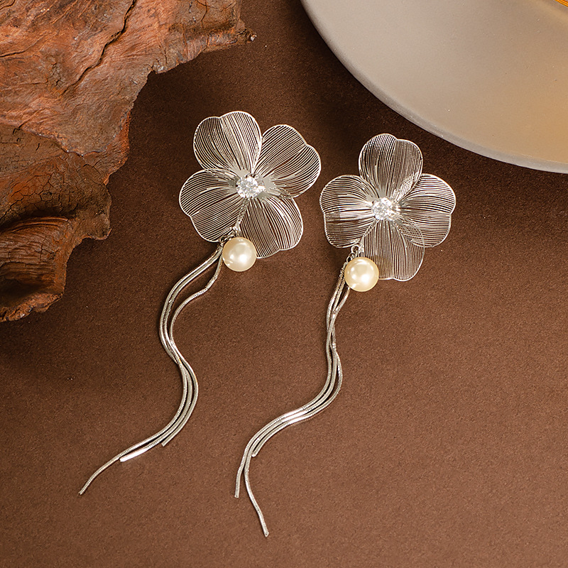Circón cúbico latón pendiente, metal, con Perlas plásticas, Flor, chapado, Joyería & micro arcilla de zirconia cúbica, más colores para la opción, 29x12mm, Vendido por Par