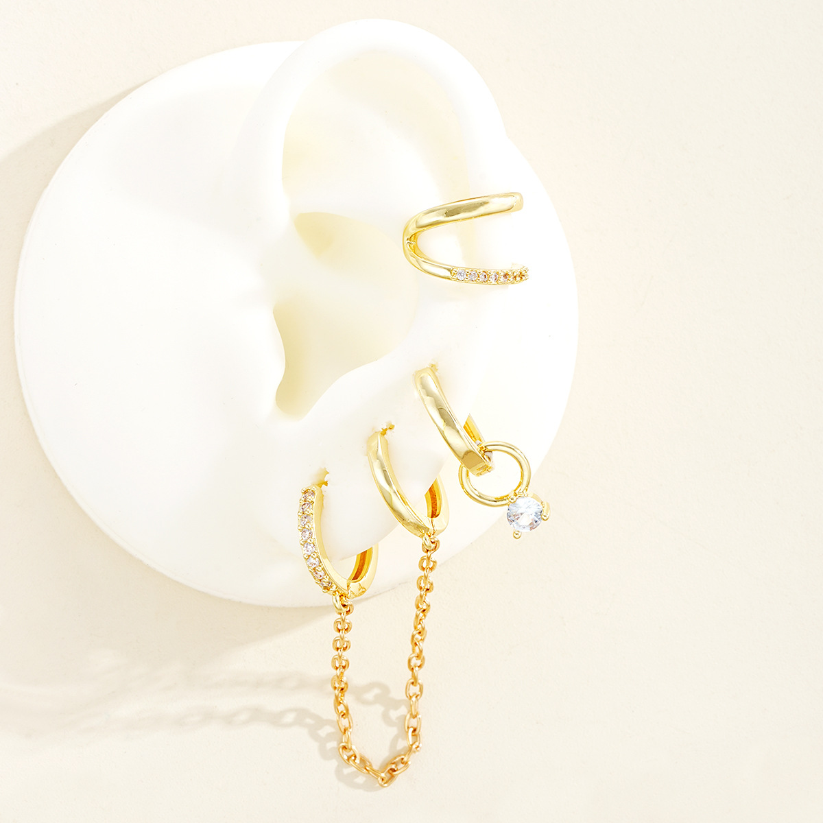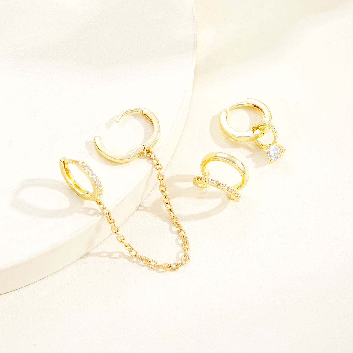Circón cúbico latón pendiente, metal, con cúbica circonia, chapado, tres piezas & para mujer & con diamantes de imitación, dorado, Vendido por Set