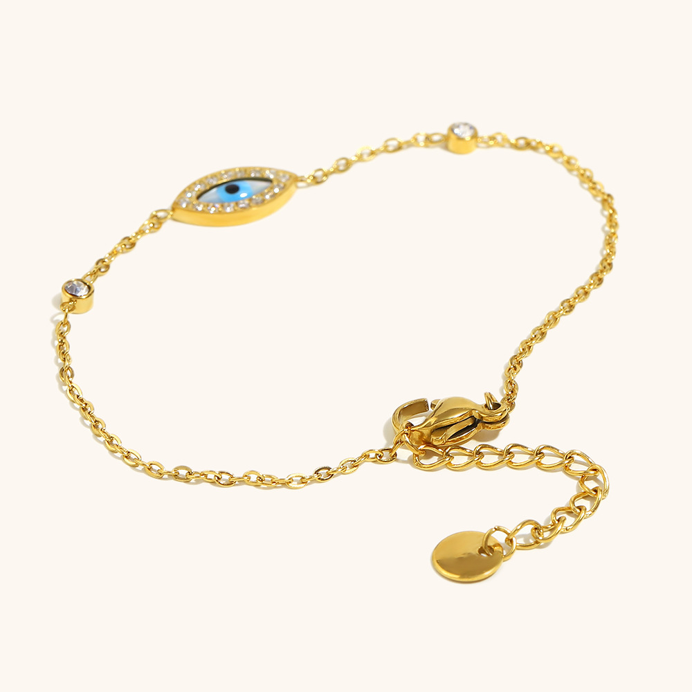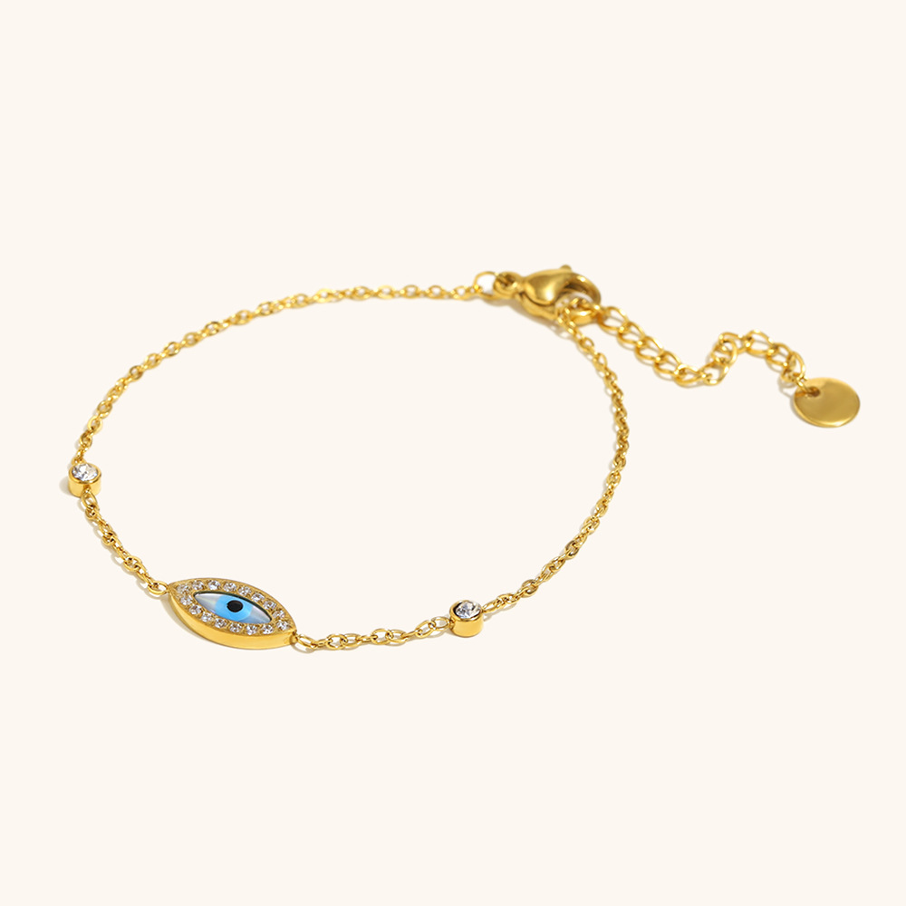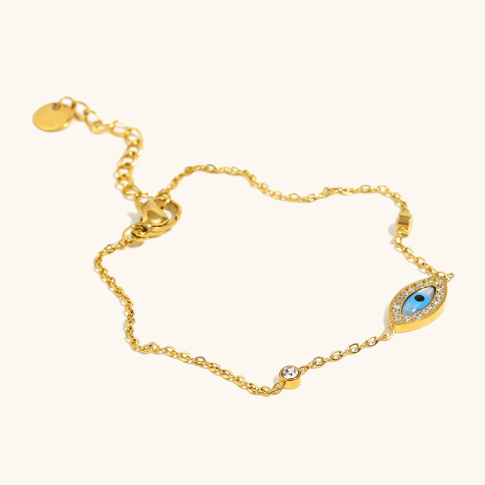 Acero inoxidable Pulsera con dijes, acero inoxidable 304, 18K chapado en oro, para mujer & esmalte & con diamantes de imitación, Vendido por UD
