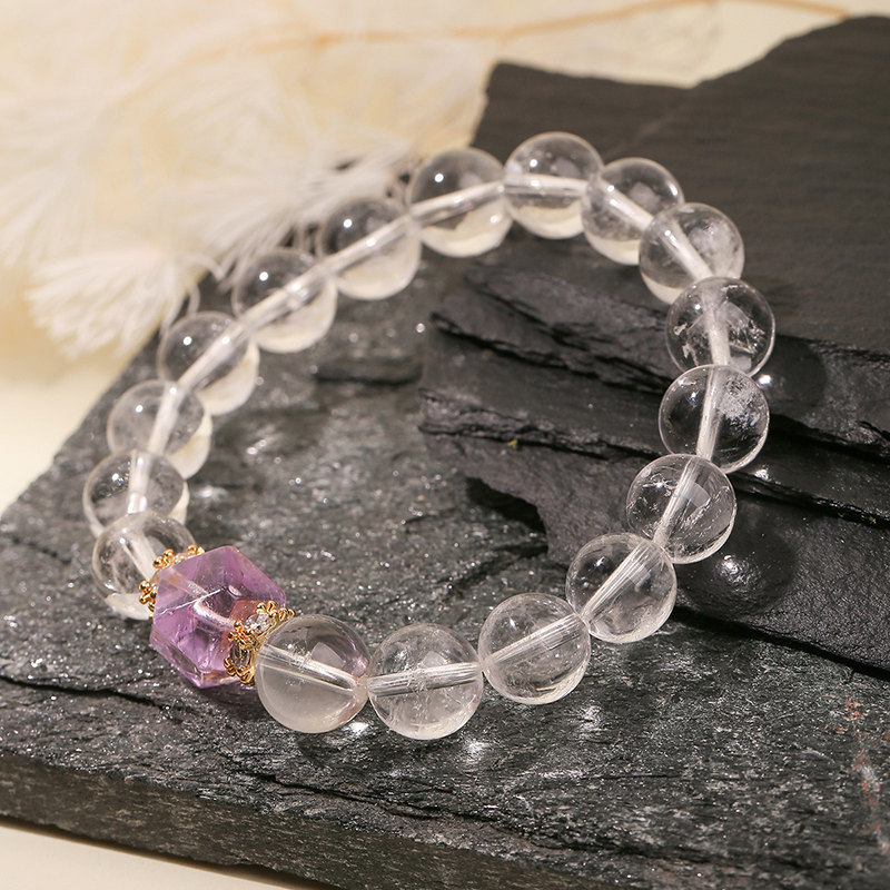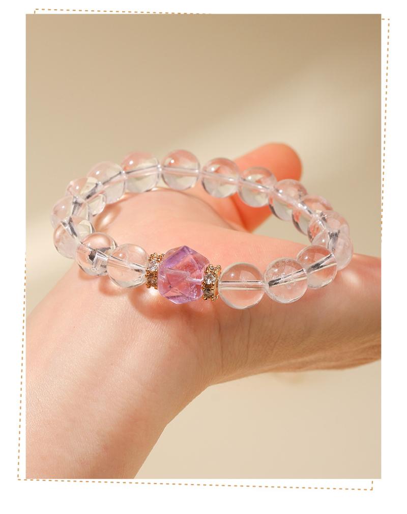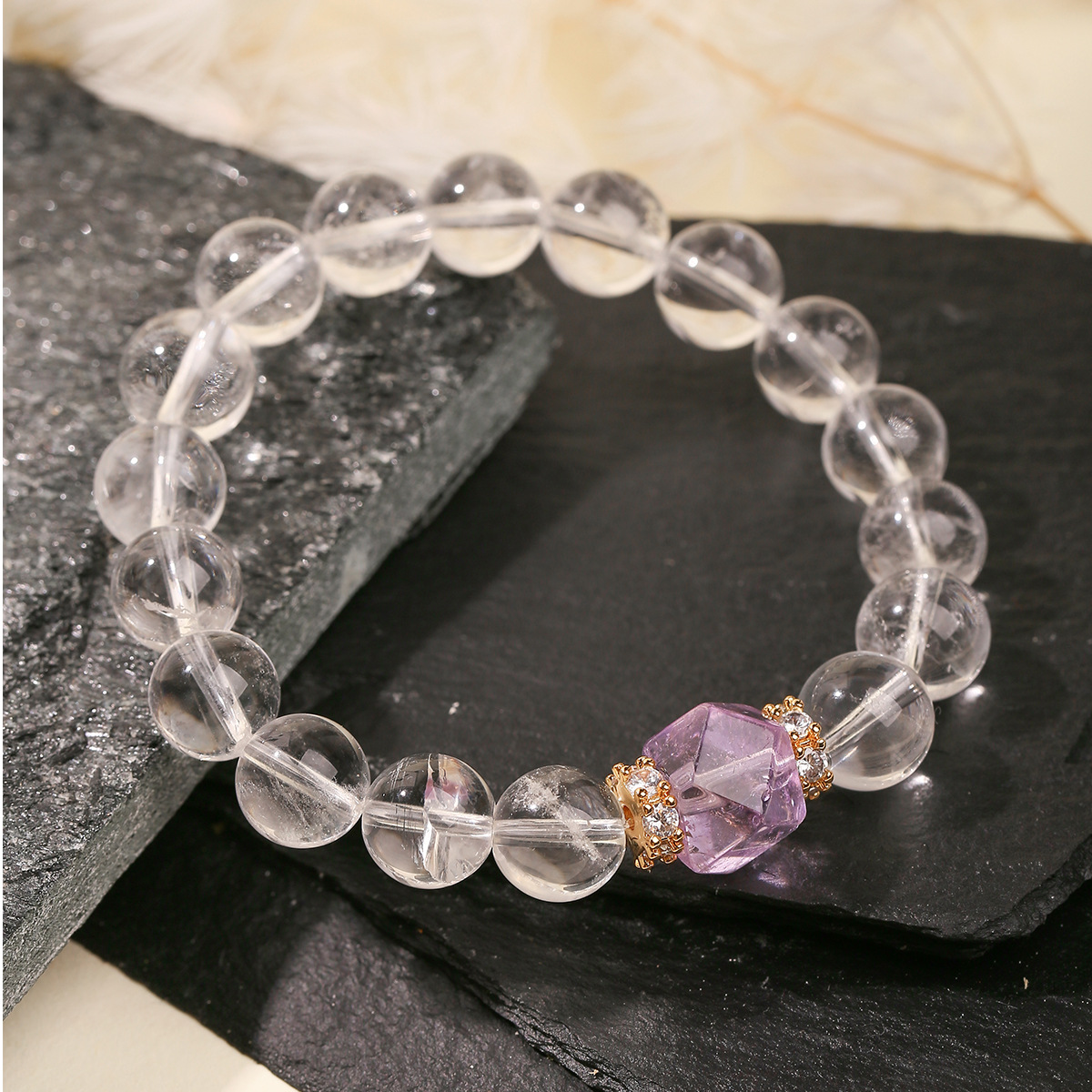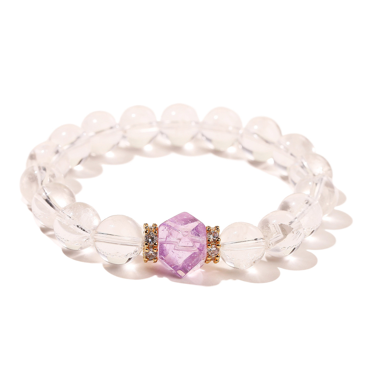 Pulseras de cuarzo, cuarzo claro, con amatista & metal, Joyería & micro arcilla de zirconia cúbica, color mixto, 10mm, Vendido por UD